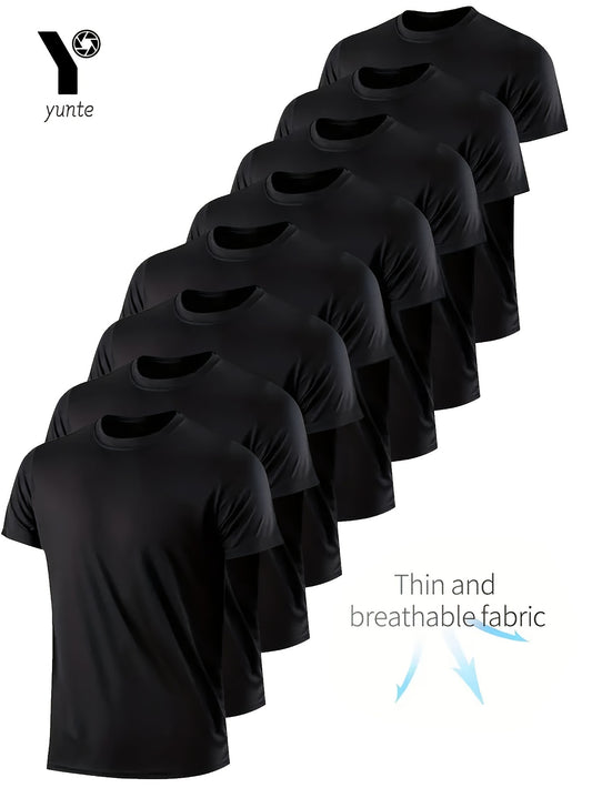 8 Magliette Ultra Leggere Uomo YUNTÉ - Traspiranti, Assorbenti, Poliestere, Collo Tondo, Maniche Corte - Ideali per Palestra, Corsa e Fitness, Leggere e Comode, Abbigliamento Sportivo