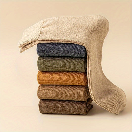6 Paia di Calzini da Uomo in Cotone a Mezza Gamba, Colore Solido Casual Versatile Nero Lungo Inverno Autunno, 1