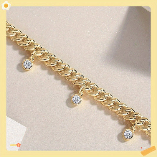 925 Argento Incastonato Moissanite Oro Circolare Taglio Moda Catena Cubana Pendente Braccialetto per Uomini e Donne, Gioielli Scintillanti per Tutti i Generi, Regalo di Natale, Regalo di Halloween, Regalo di Anniversario, Miglior Regalo per Coppie