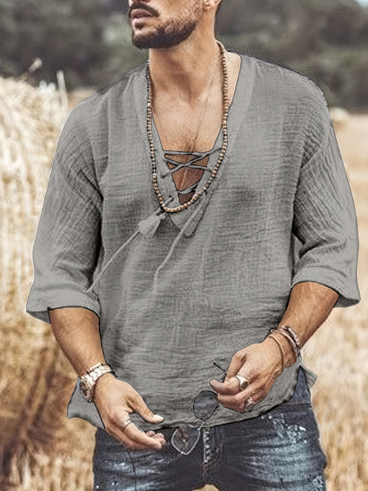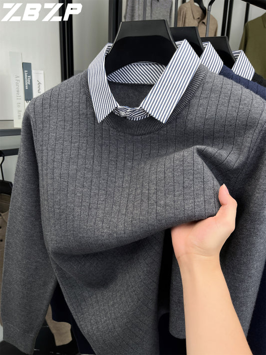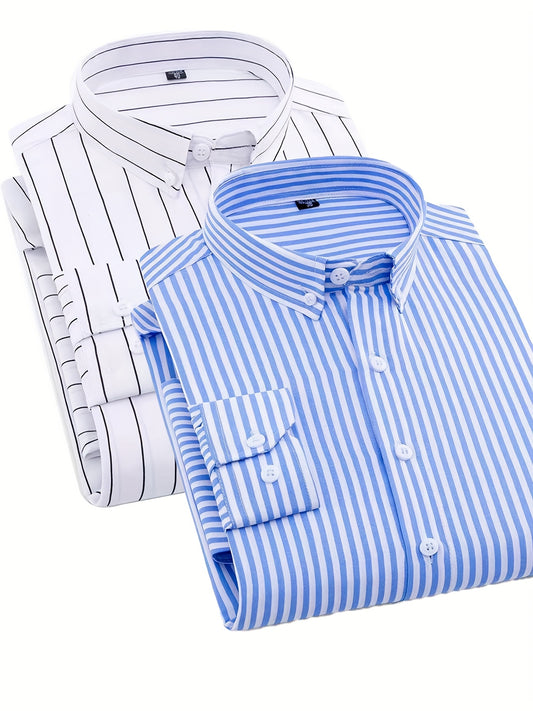 Belvion - 1+1pz Camicia Uomo a Righe con Maniche Lunghe