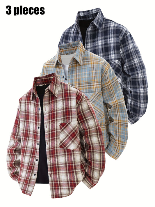 Uomo+ Classic - Set di 3 camicie a quadri da uomo