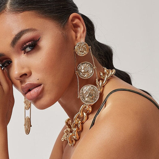 SAVE 77%Gold Coin Medallion Drop Earrings
