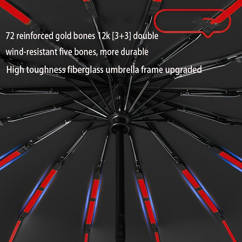 1Cp72 Ombrello Automatico con 72 Ribs Rinforzati, Adatto per Uomini e Donne, Pieghevole, Portatile e Durevole con .