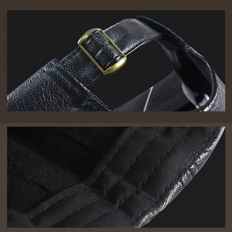 1pz Cappello da baseball casual in similpelle da uomo, cappello invernale alla moda regolabile con fodera in pile per persone di mezza età e anziani