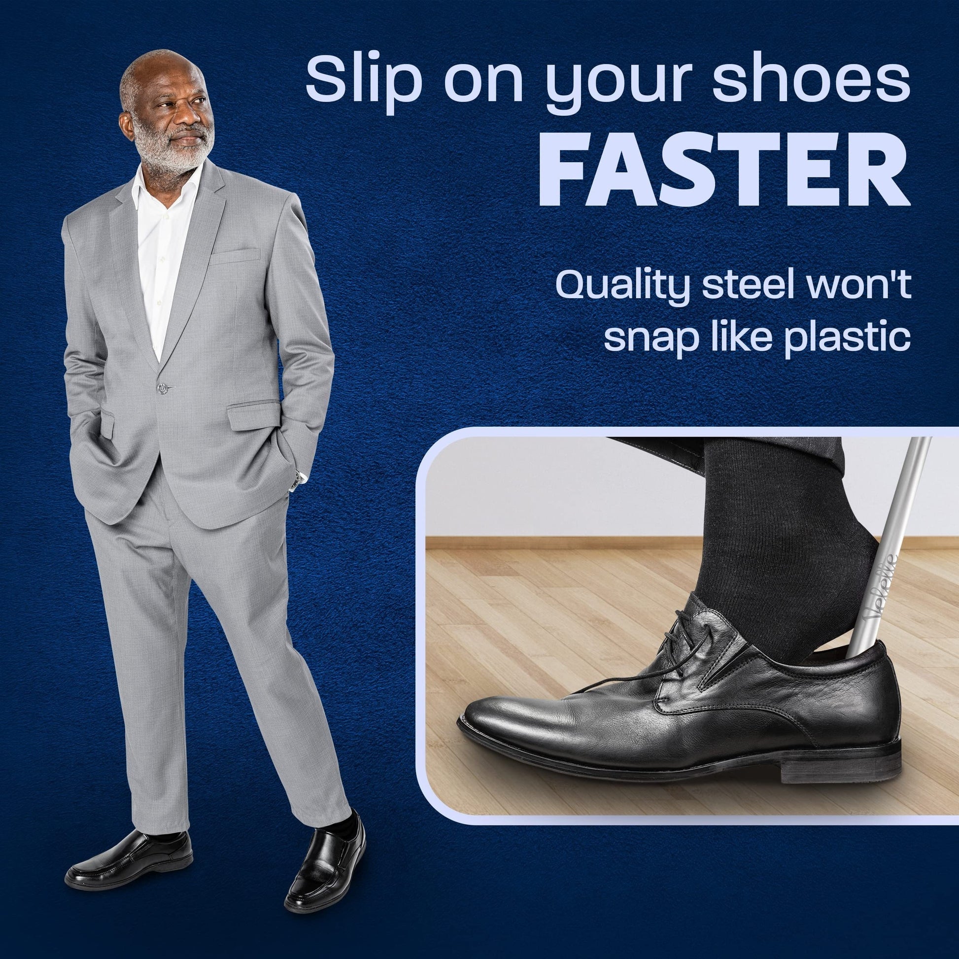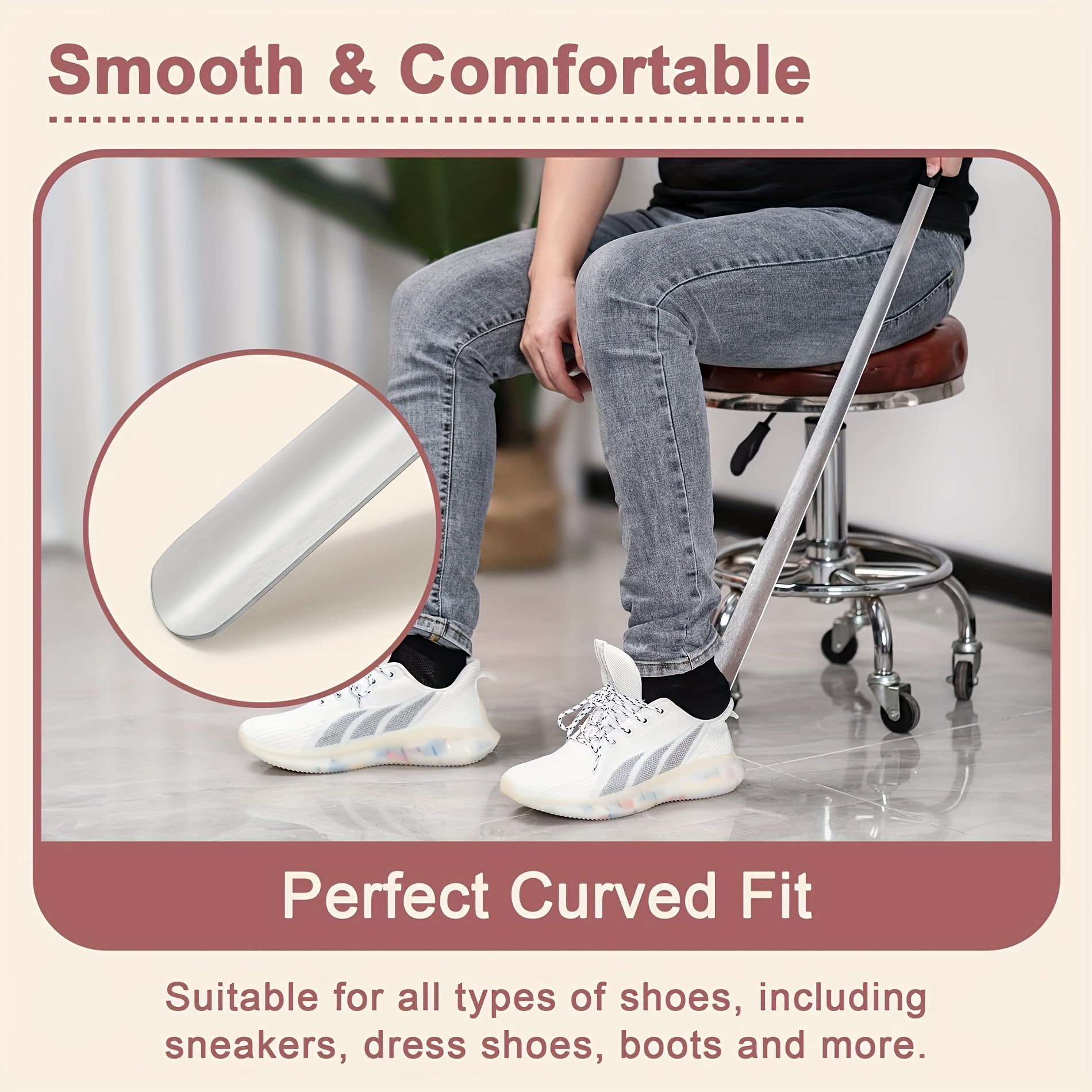 1pz Extra Lungo 41.91 cm Calzascarpe in Acciaio Inox per Anziani - Impugnatura Comfort Antiscivolo, Costruzione in Metallo Durevole, Strumento Facile per Mettere e Togliere le Scarpe per Anziani, Disabili, Persone con Mobilità Ridotta