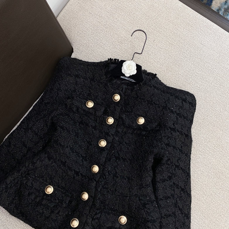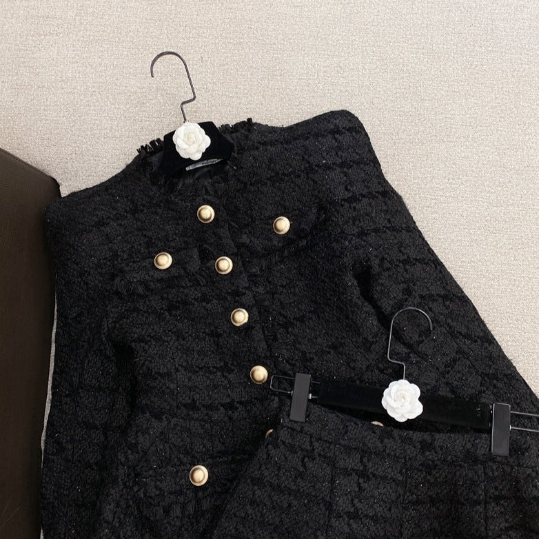 2-Piece Gold Button Tweed Jacket & Skirt Set