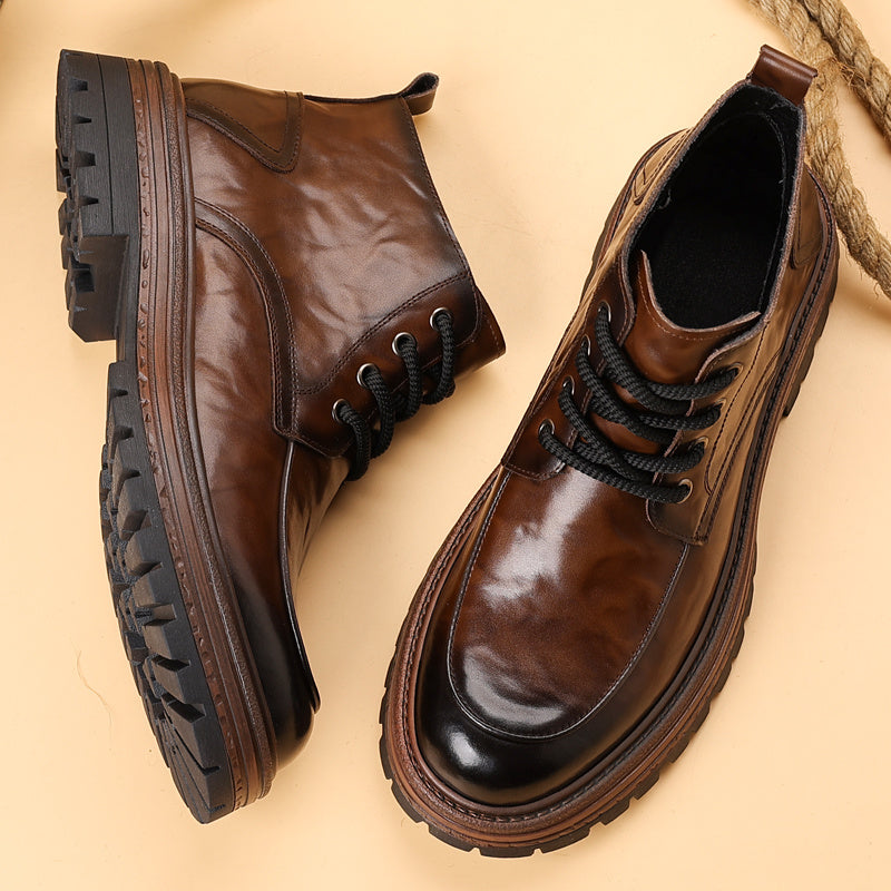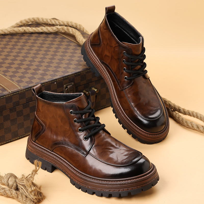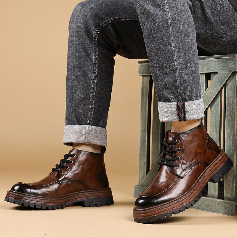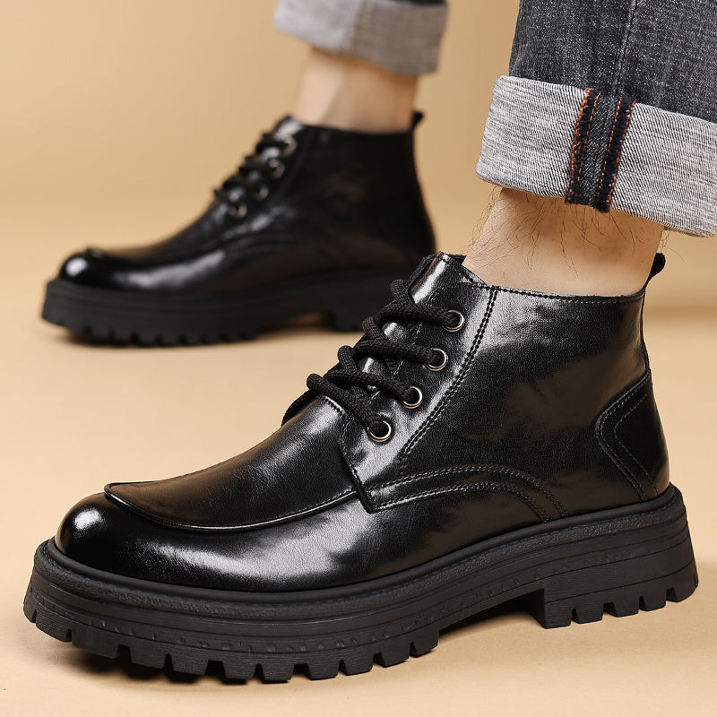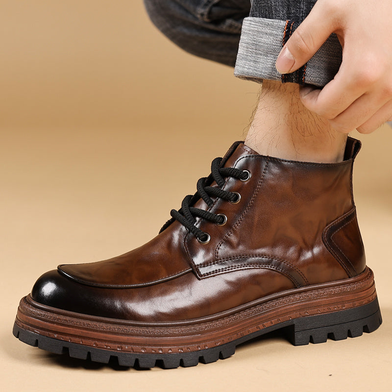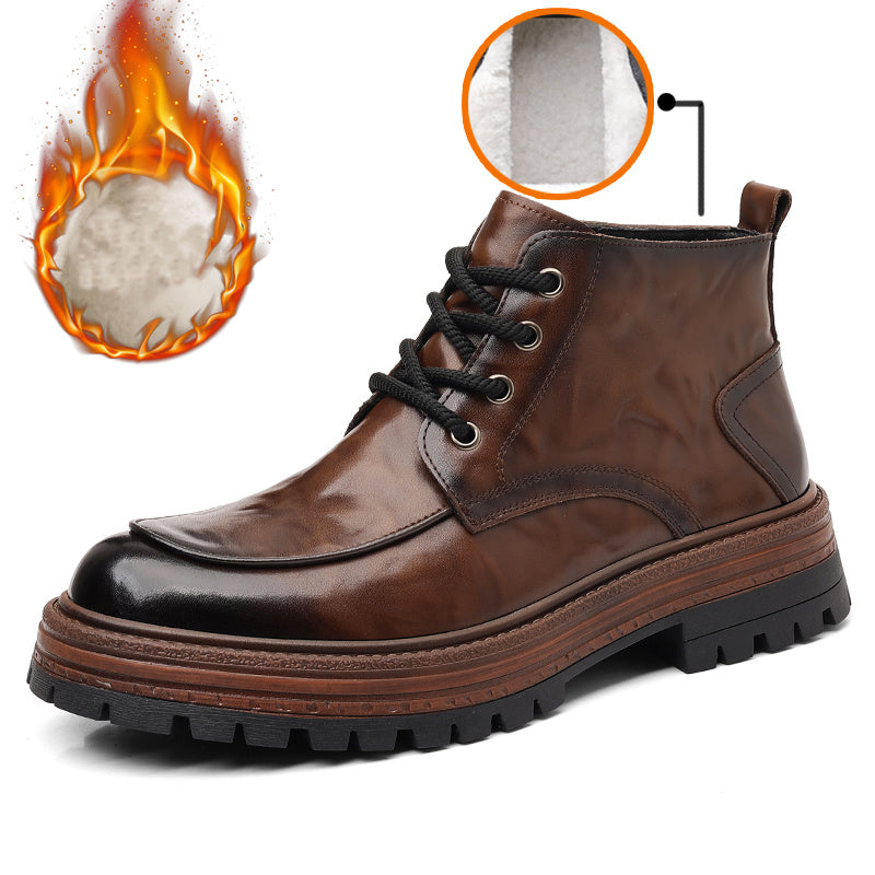 2025 Autunno Inverno Moda Uomo Stivali alla Caviglia con Lacci - Copertura Finta Superiore, Suola in Gomma Antiscivolo, Punta Rotonda, Casual Outdoor Streetwear, 2 Opzioni (Fleece o Non-Fleece), Durevole e Confortevole per l'Abbigliamento Quotidiano, Escu