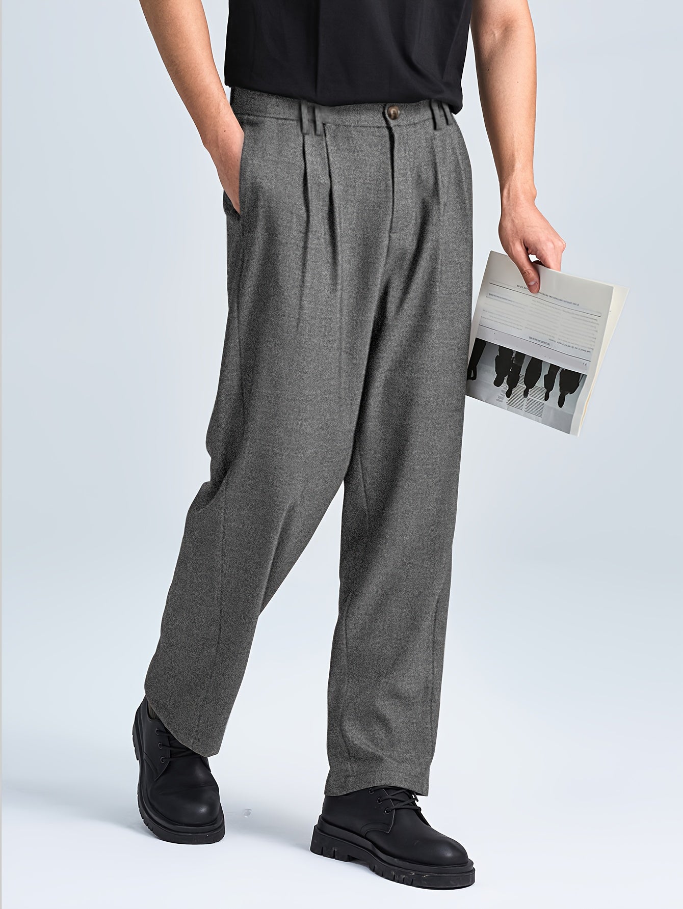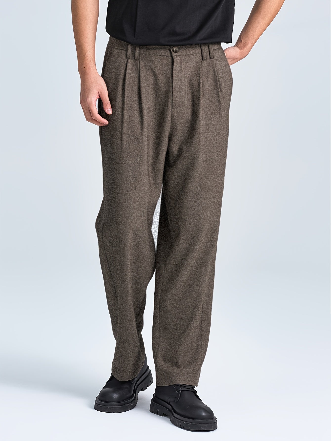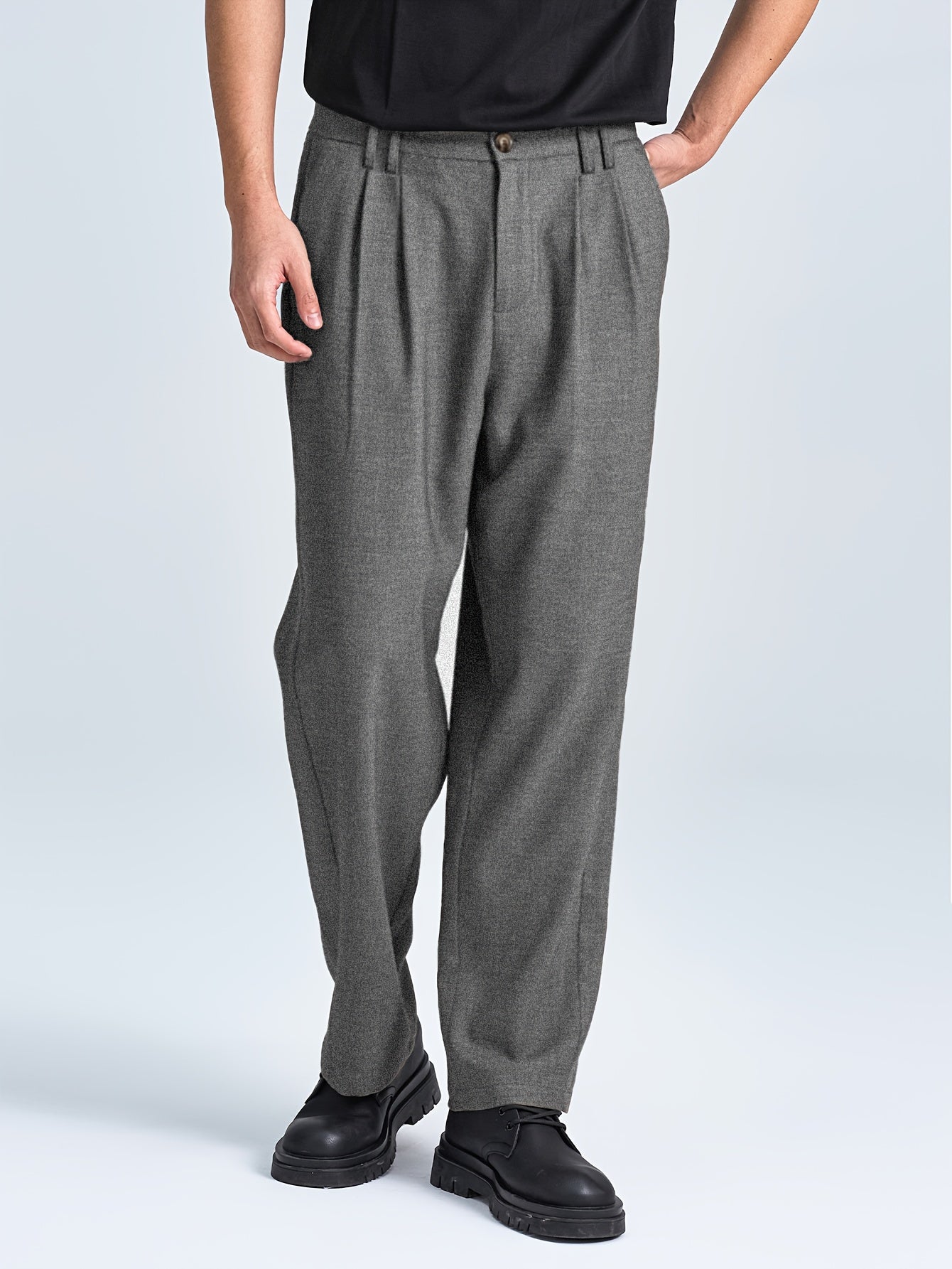 2025 Autunno Nuovo Lavoro Leggero Elegante Italiano Napoli Bottone Plissetto Alta Vita Pantaloni a Gamba dritta per Uomini, Cintura Non Inclusa