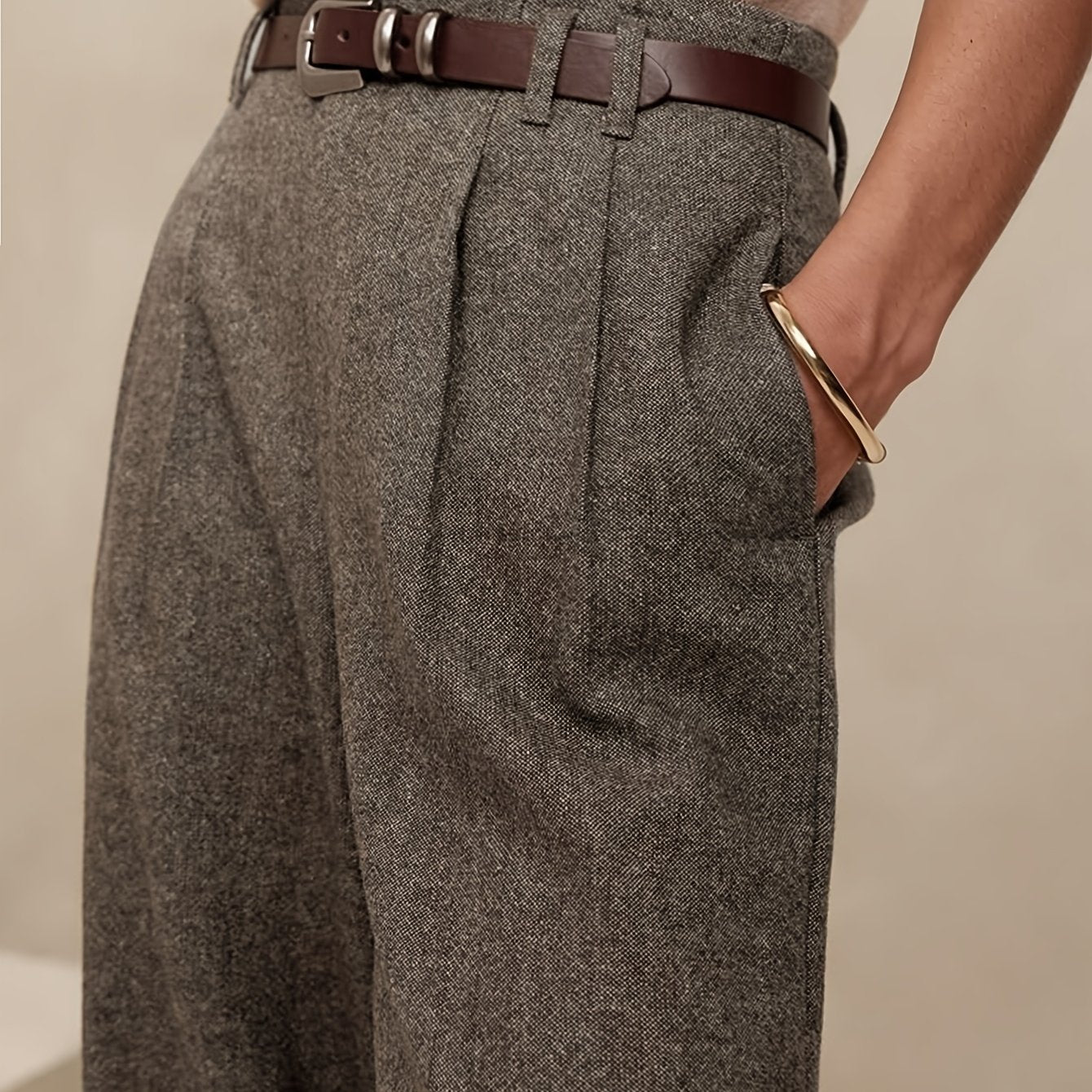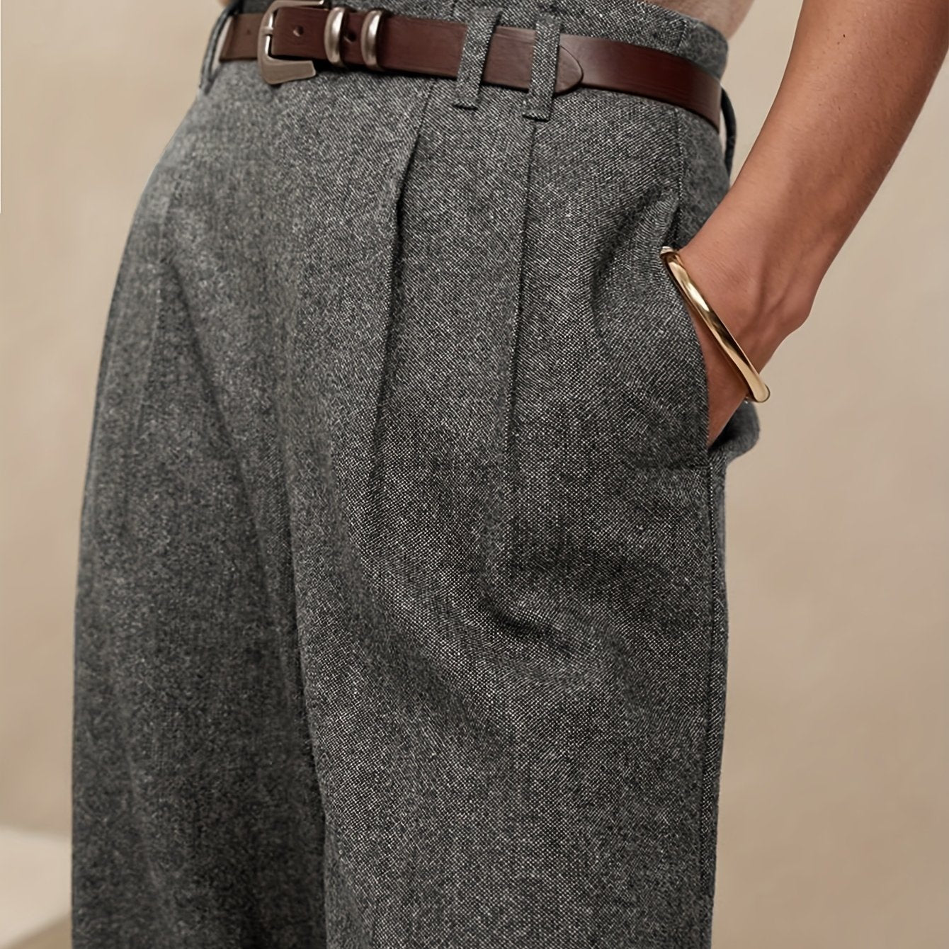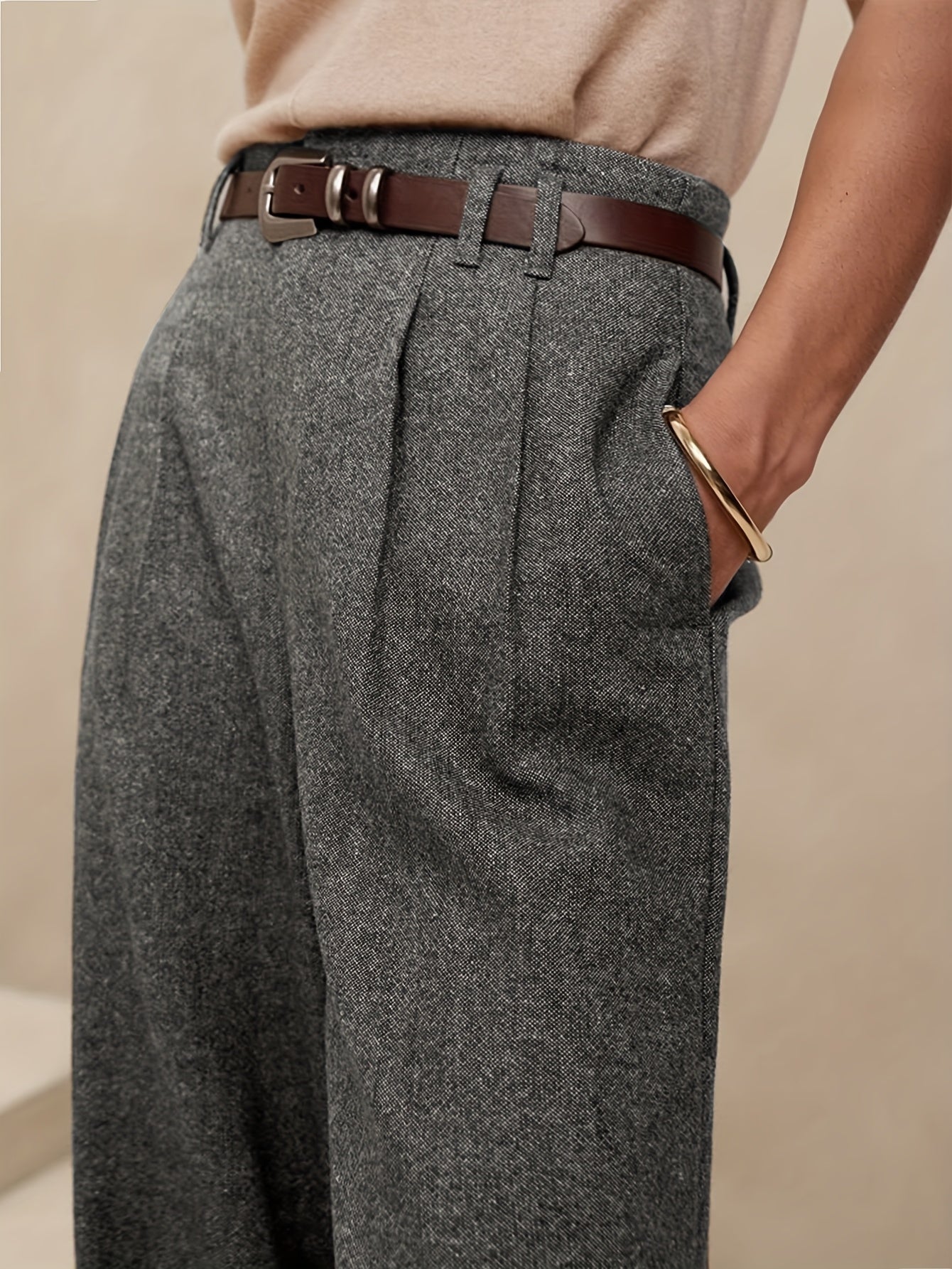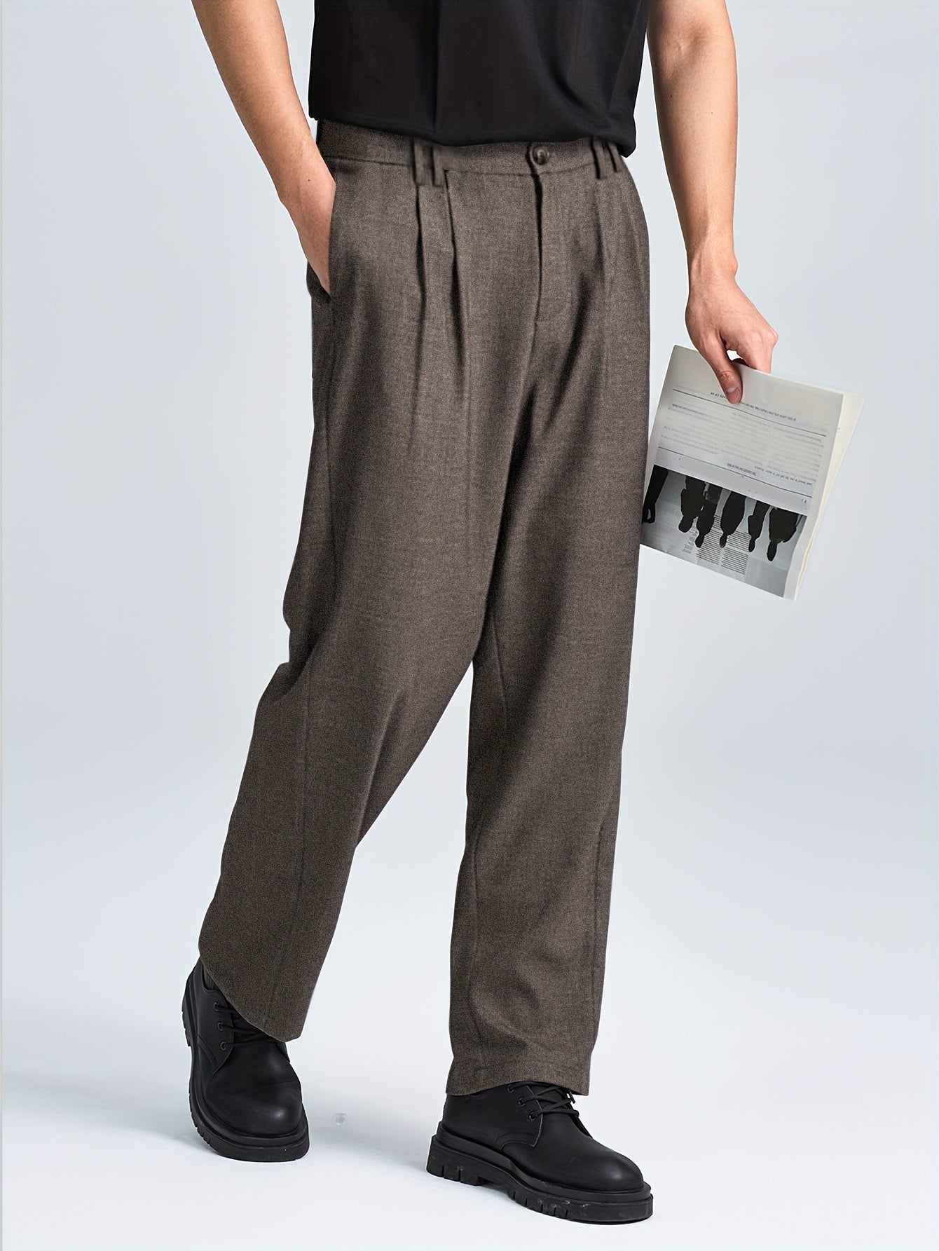 2025 Autunno Nuovo Lavoro Leggero Elegante Italiano Napoli Bottone Plissetto Alta Vita Pantaloni a Gamba dritta per Uomini, Cintura Non Inclusa