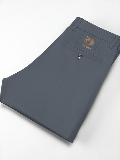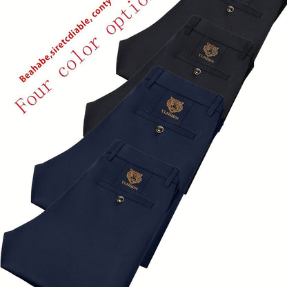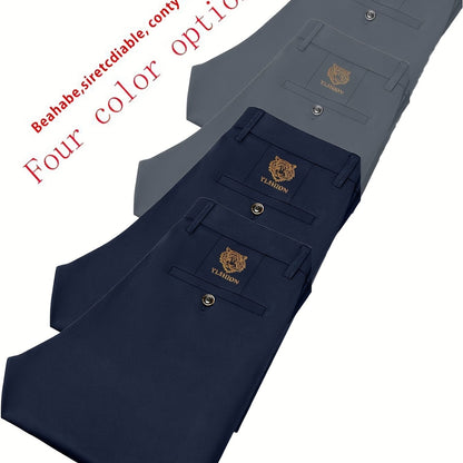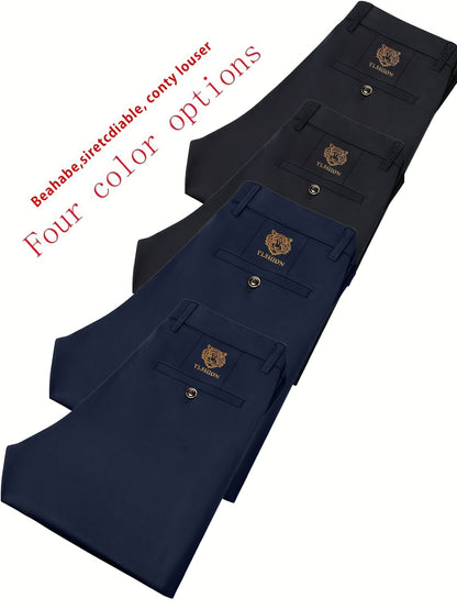 4pcs Pantaloni Eleganti Casual da Uomo a Gamba Dritta - Tessuto Elasticizzato Poliestere/Elastan, Tasche con Stampa Animalier, Comfort per Tutte le Stagioni, Solo Lavaggio a Mano (Beige/Navy/Grigio Carbone/Rosso)