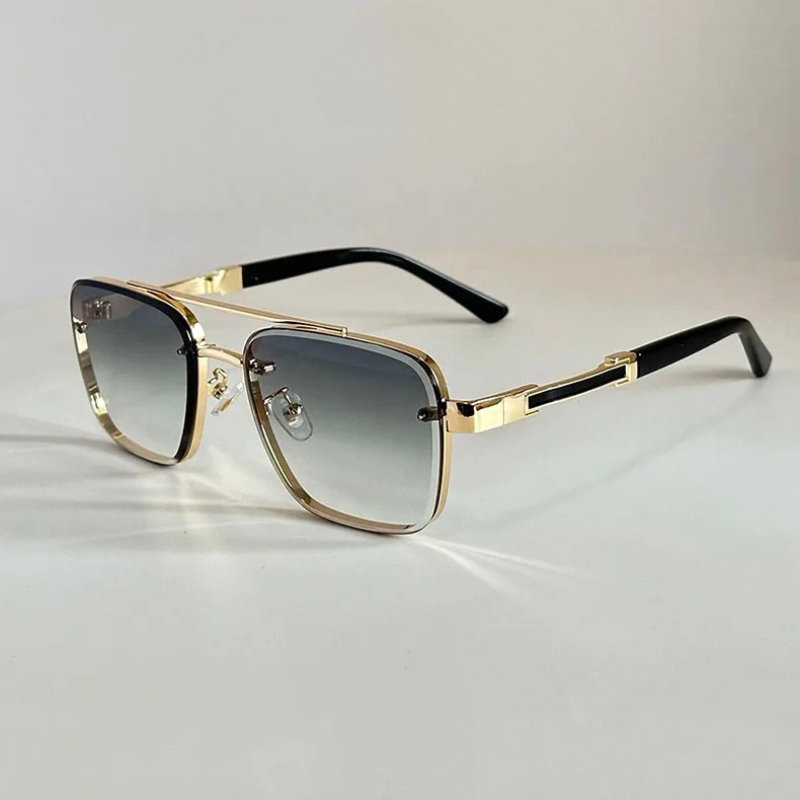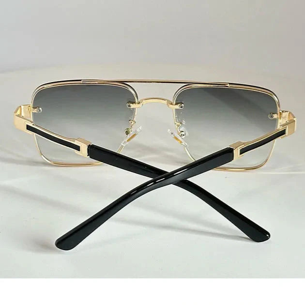 The kind of sunglasses that make people wonder if you just stepped off a private jet. Retro glam, double bridge, gold frame—yes, they are staring.