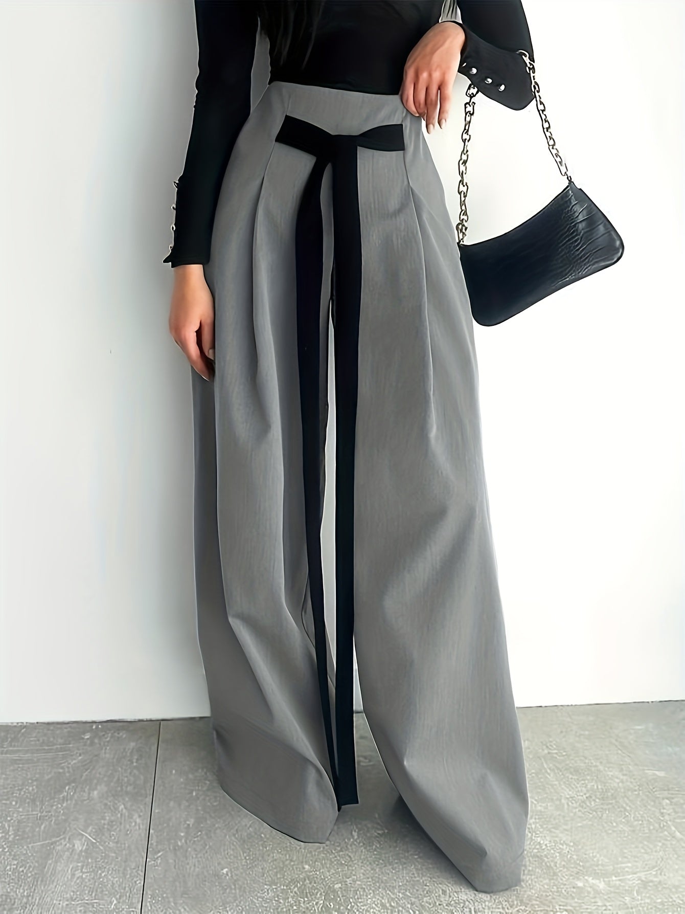 BK052044 Elegant Suit Jacket and Waist-Tie Loose Straight-Leg Wide-Leg Pants Women's Two-Piece Suit