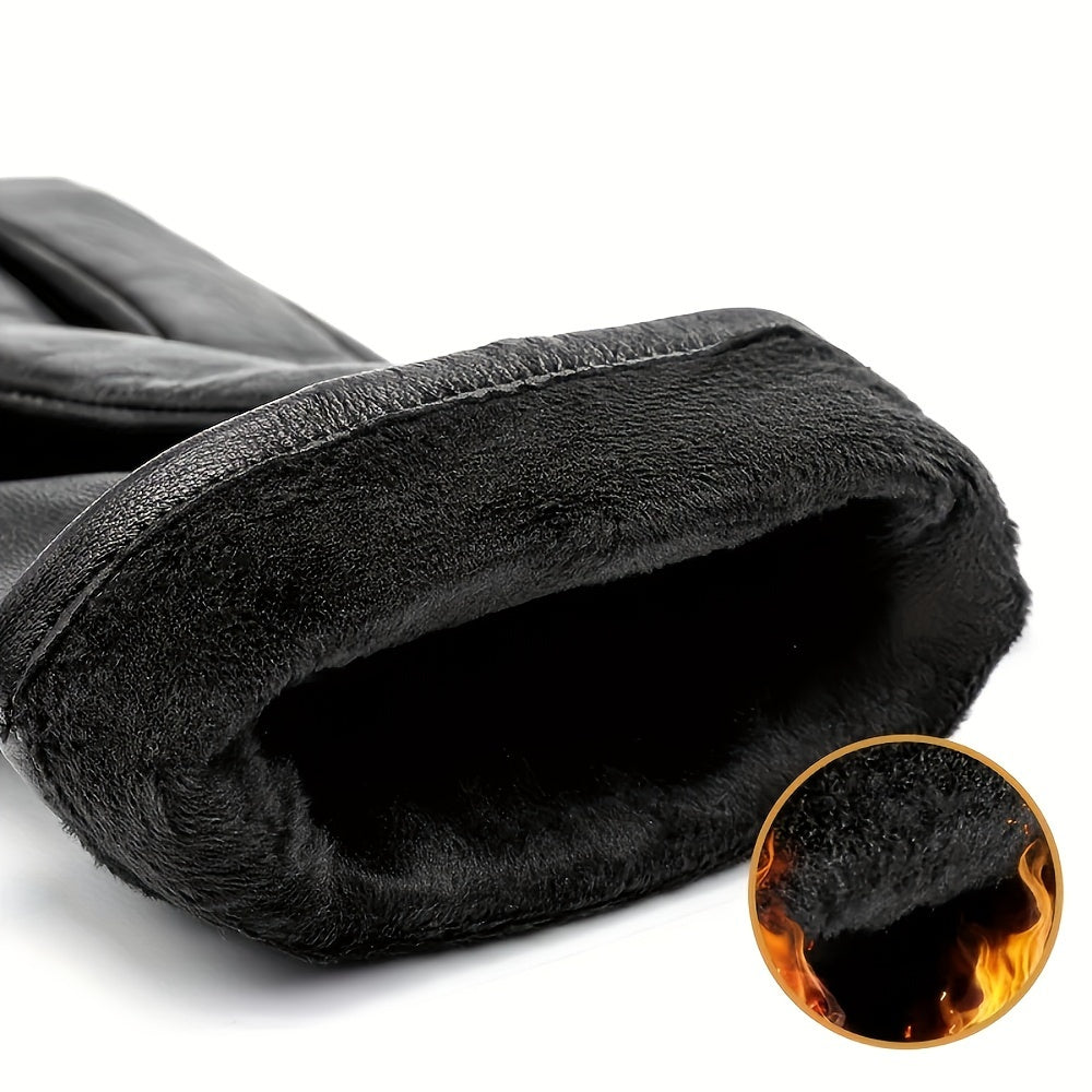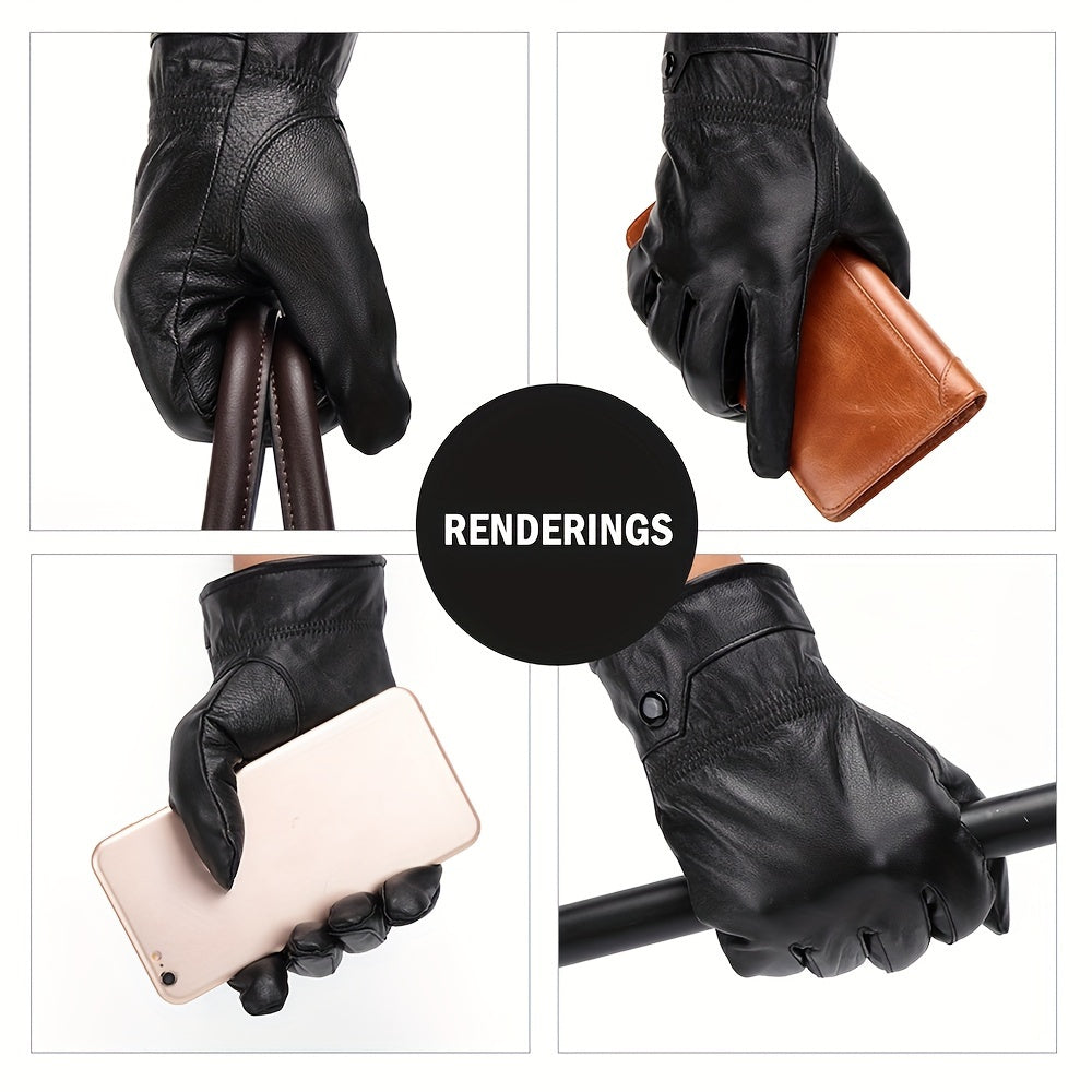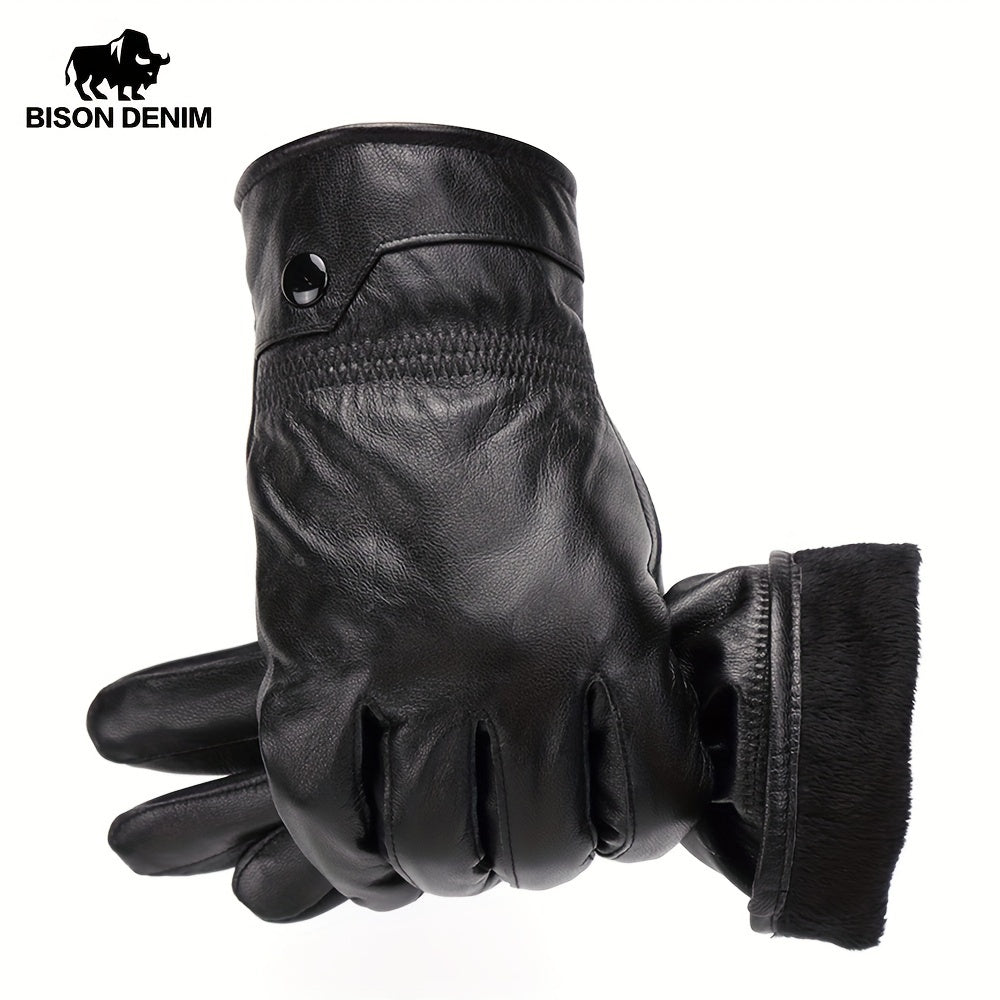 Linea Uomo+ Elegance - Guanti in pelle reale BISON DENIM per uomo, guanti casual da esterno con fodera in pile, caldi e antivento per escursioni