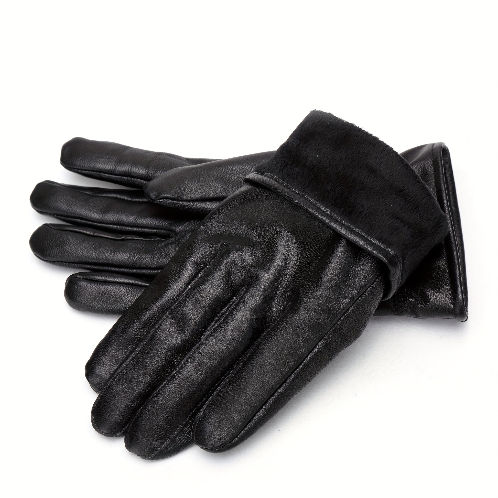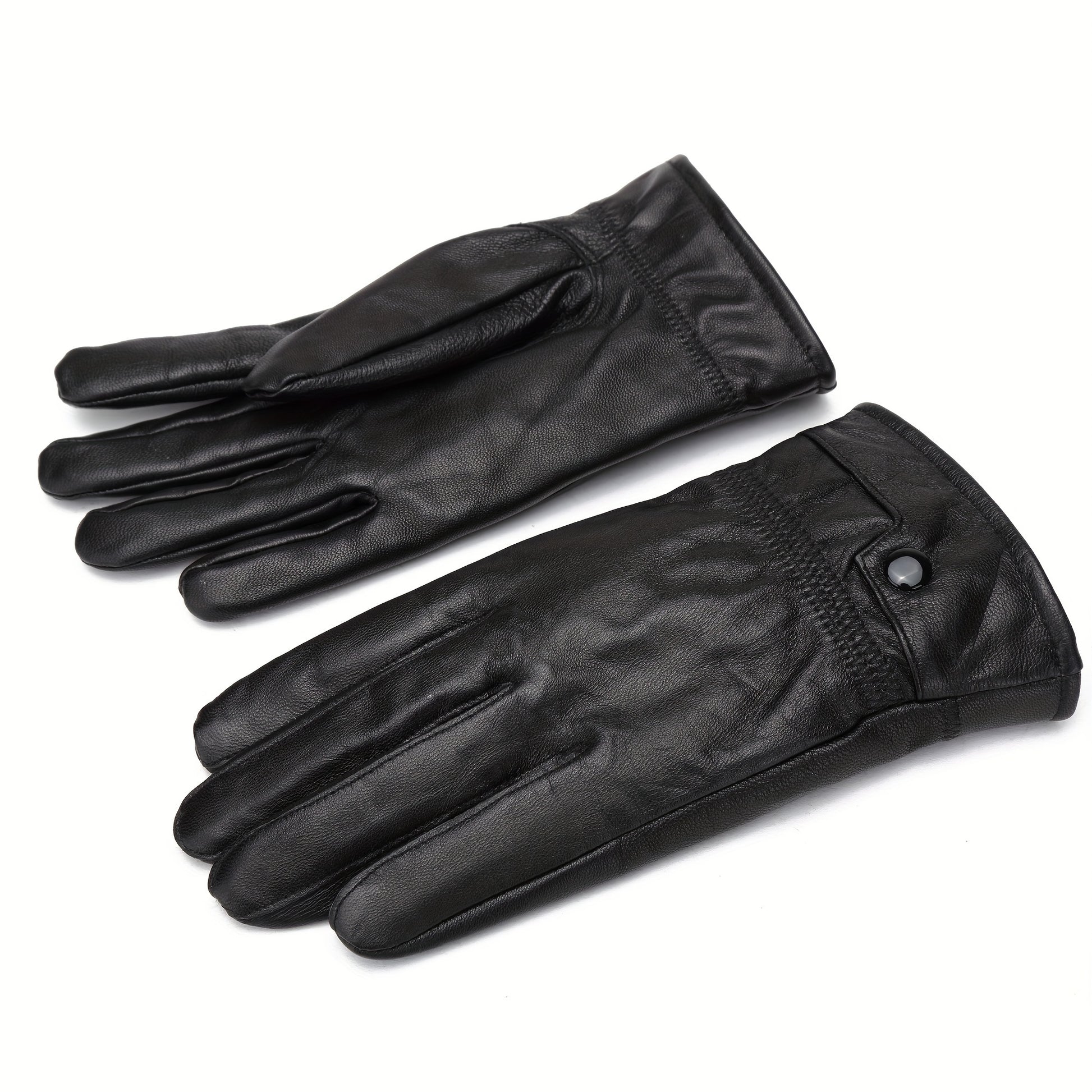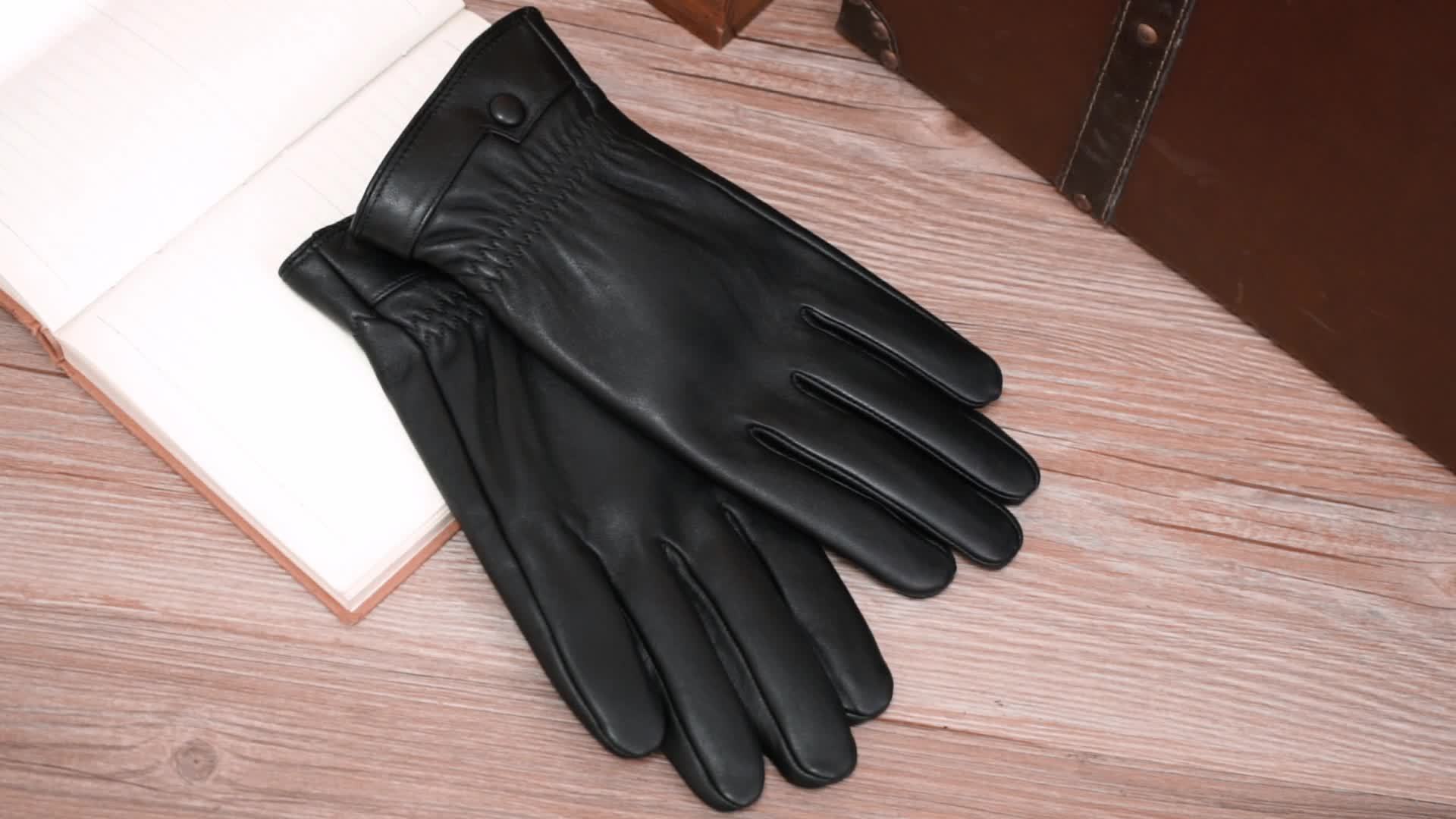 Linea Uomo+ Elegance - Guanti in pelle reale BISON DENIM per uomo, guanti casual da esterno con fodera in pile, caldi e antivento per escursioni