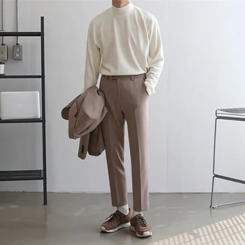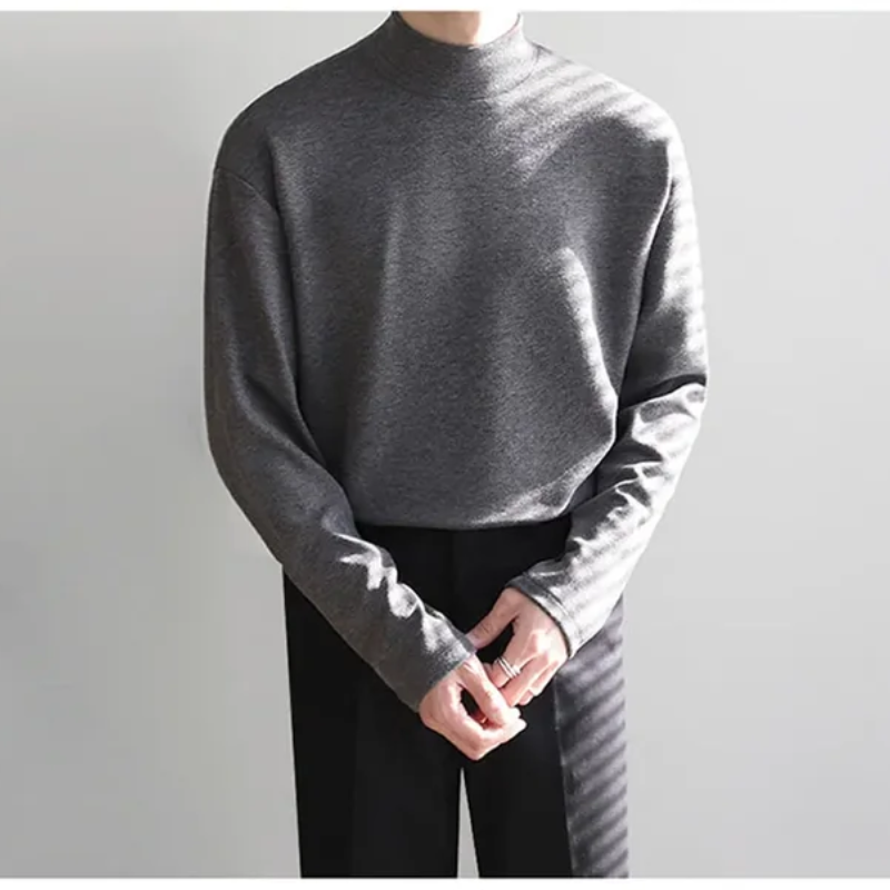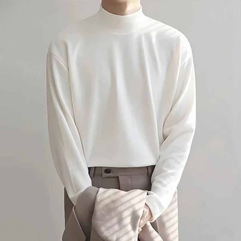 Experience the rich texture and impeccable fit of this mock neck tee. Crafted to complement fine tailoring or casual layers, it redefines the art of staying warm.