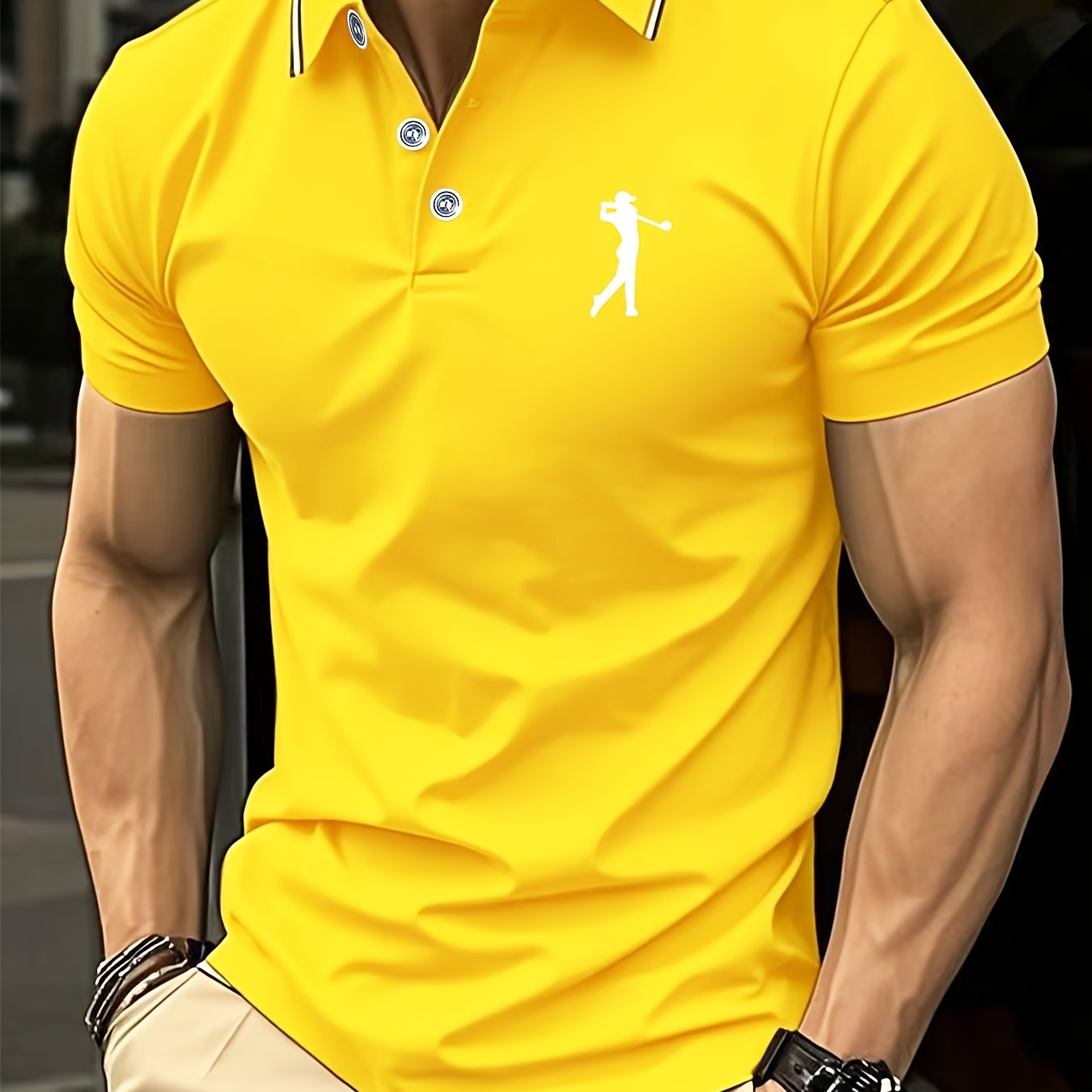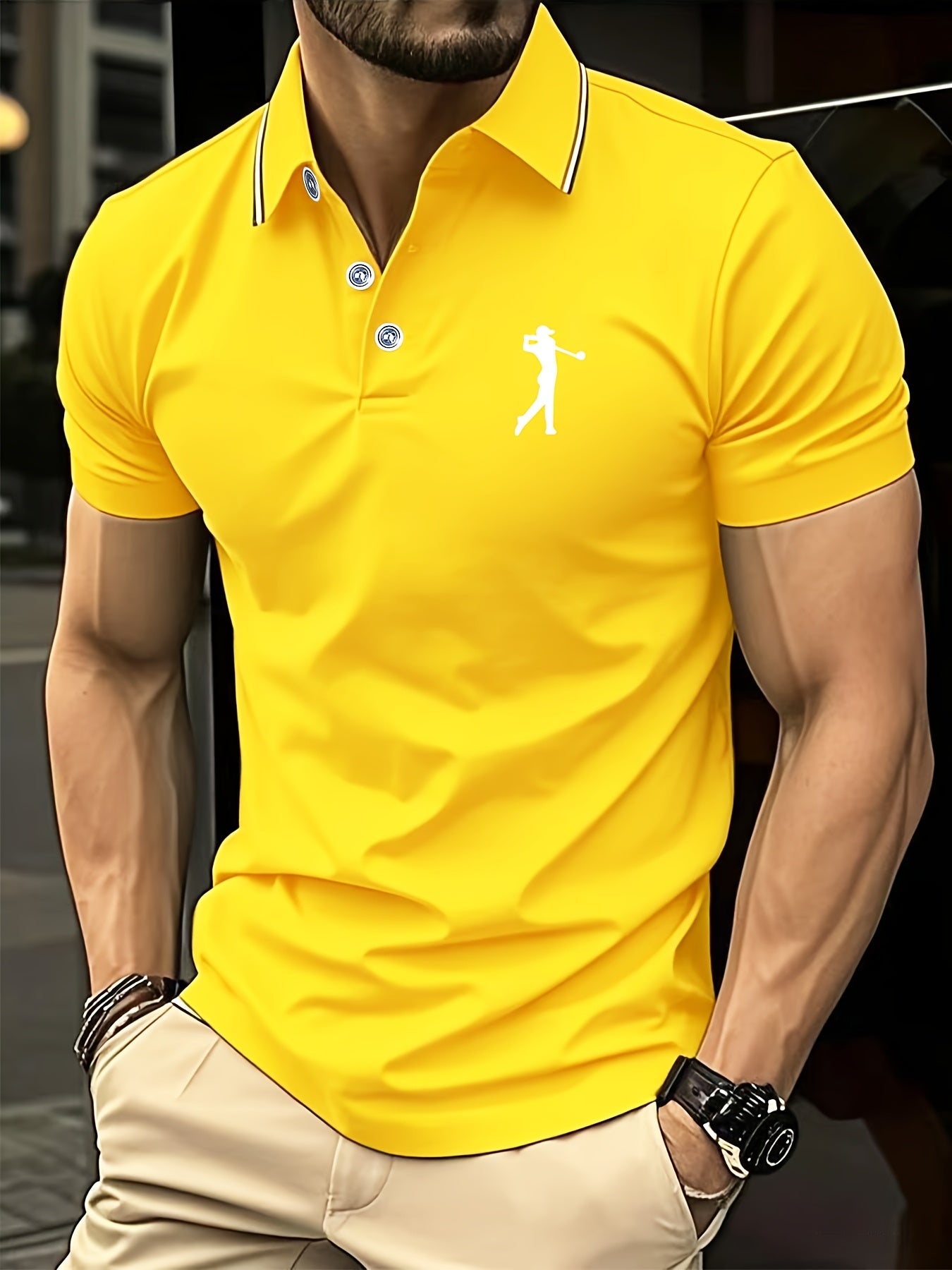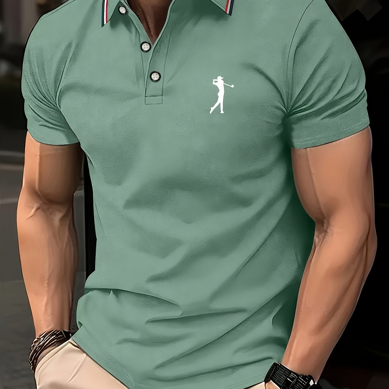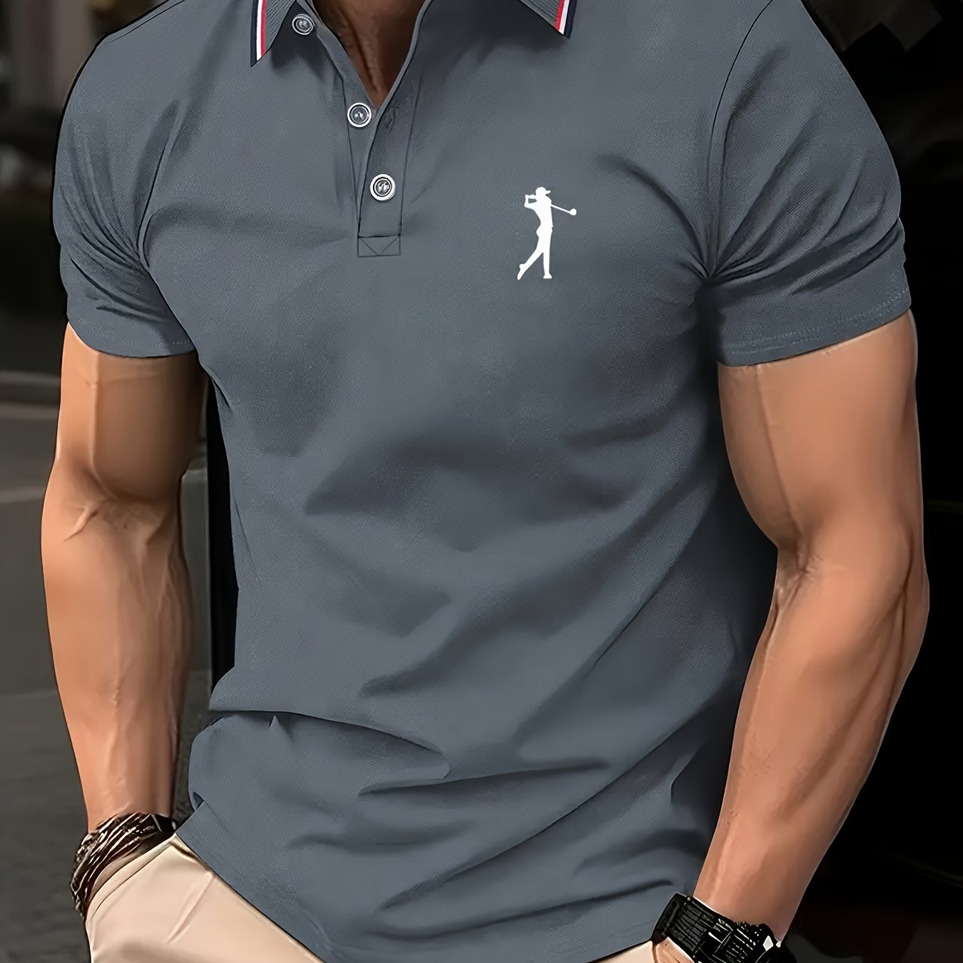 Maglietta da Uomo a Maniche Corte Bianca con Stampa Rosso per Golf, Colletto e Polsini a Righe, Tessuto Traspirante per Estate e Abbigliamento Casual, Lavabile in Lavatrice, Vestibilità Regolare