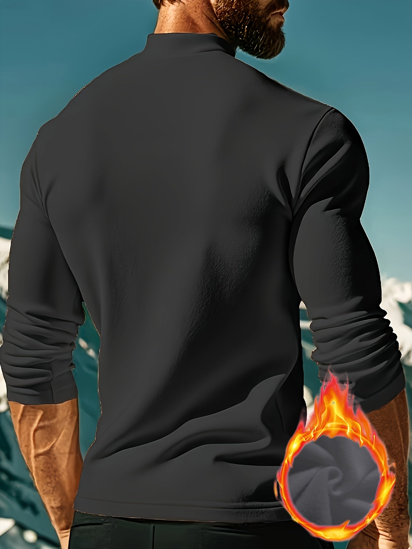 Maglietta termica a maniche lunghe e girocollo per uomo - Stampa geometrica, elastica e calda, design sportivo casual per l'autunno/inverno, bianca con lettere dorate, perfetta per sovrapporre o come outfit standalone, abbigliamento invernale | Maniche lu