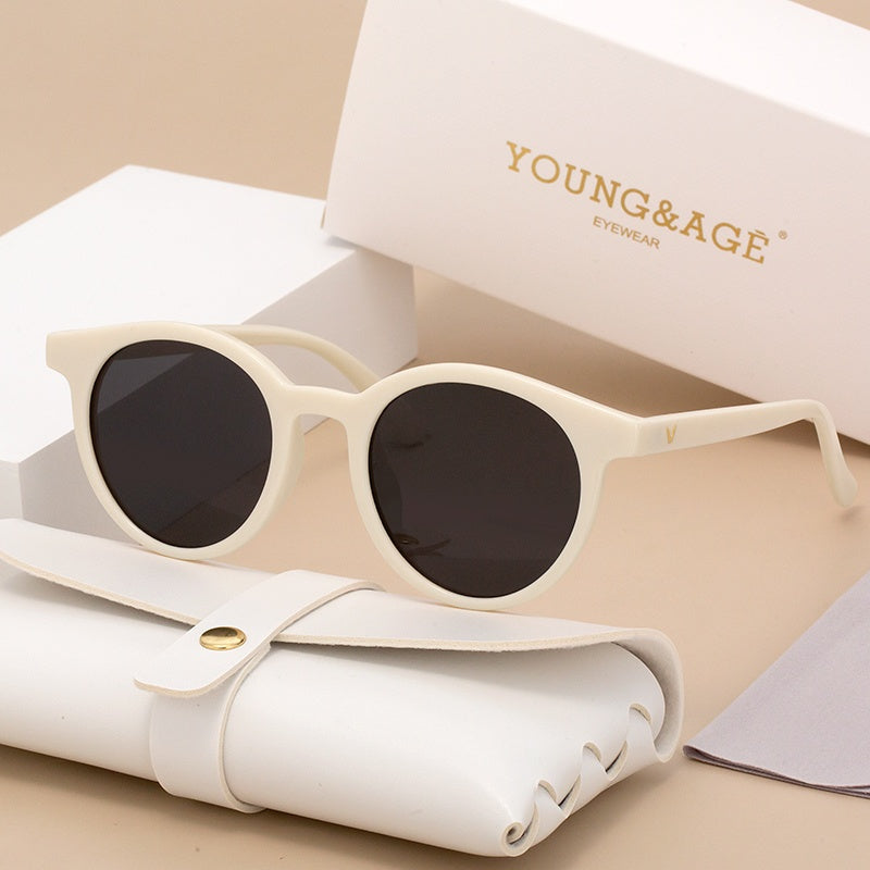 Occhiali da Sole con Montatura Rotonda per Donne - Stile 2025 Nuovo Design Bianco, Set Decorativo Retro con Custodia e Panno