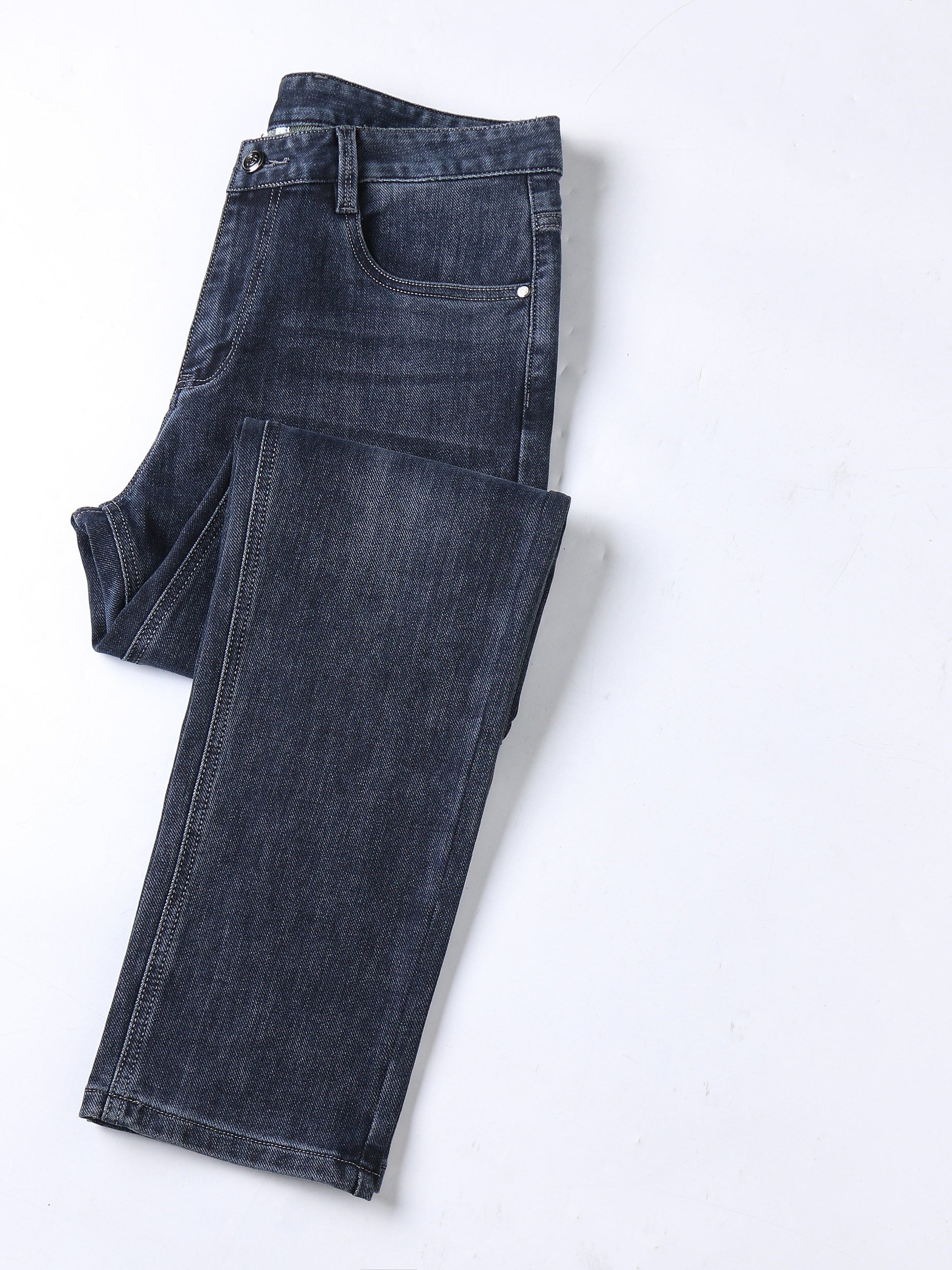 Pantaloni in denim finto elasticizzato a vita alta da uomo - Pantaloni in denim finto elasticizzato non trasparente con chiusura a bottone, design classico a cinque tasche, pantaloni formali e casual per tutte le stagioni per occasioni speciali e quotidia
