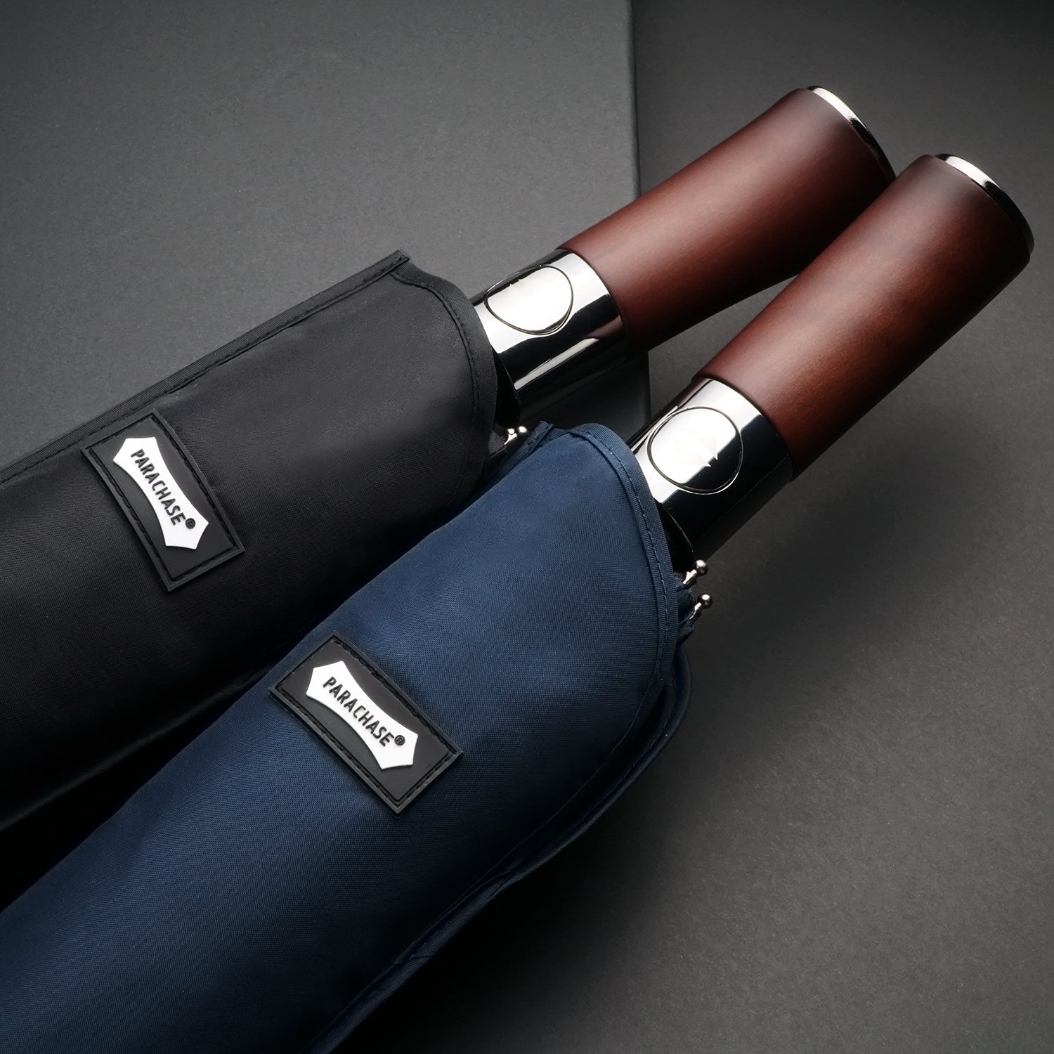 PARACHASE; Ombrello Automatico Antivento 120,9 cm con Telaio in Alluminio a 8 Stecche e Manico in Legno - Ombrello Pieghevole Compatto in Tessuto Pongee per Look Business Casual | Accessorio Elegante | Ombrello da Esterno