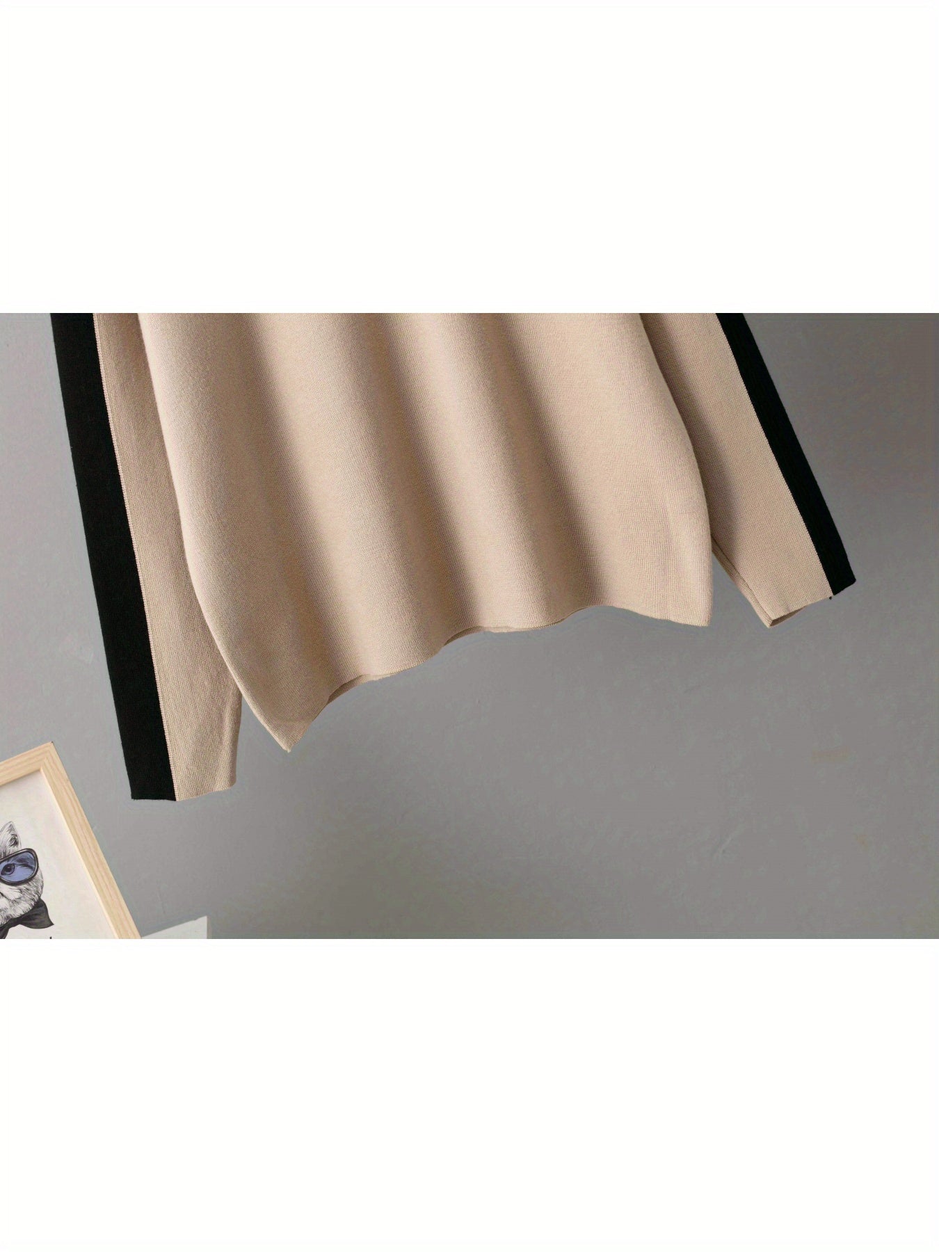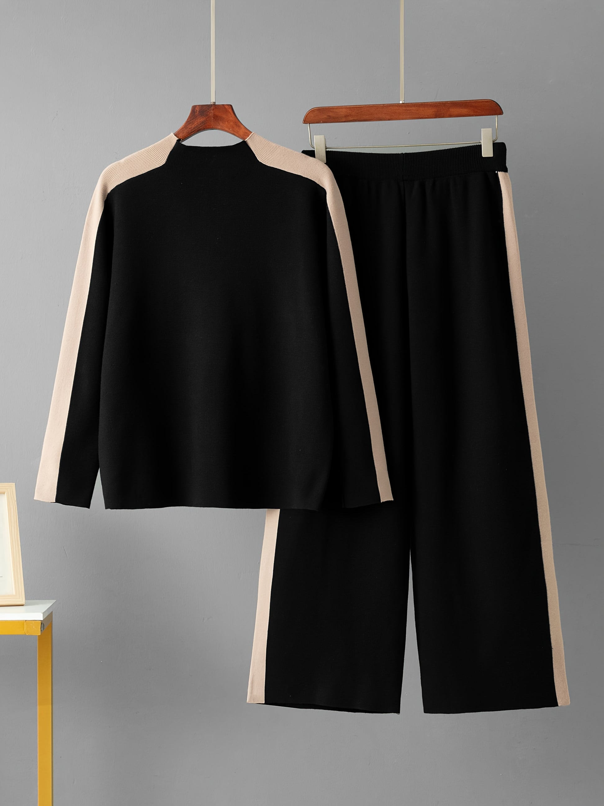 Set casual da donna 2025 - Maglione a mezza gola beige con bordo nero e pantaloni a gamba larga, elegante maglieria per la primavera e l'autunno, abbigliamento casual|Stile casual|Costruzione, Maglieria da donna, Abito formale per donna, Abito casual e el