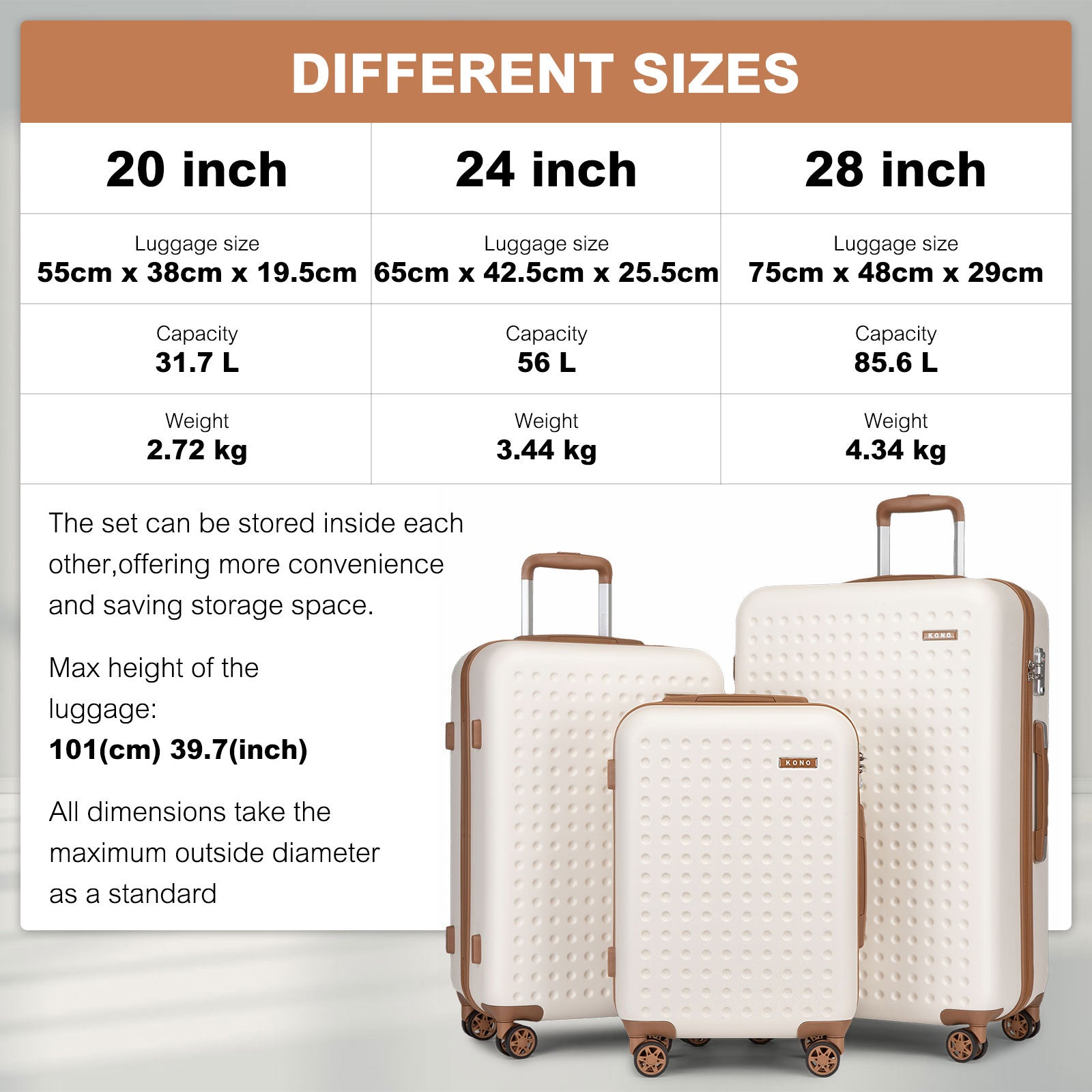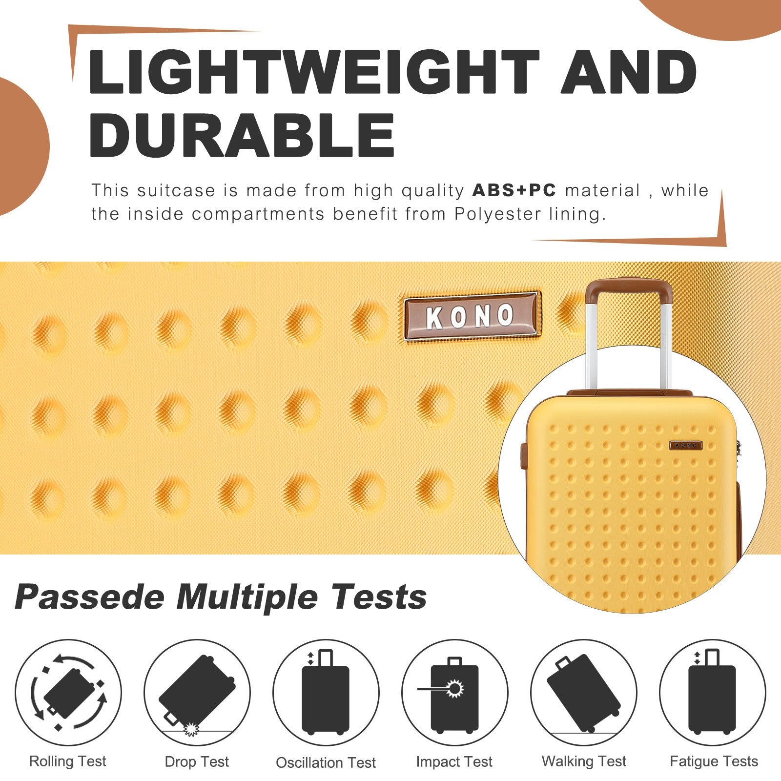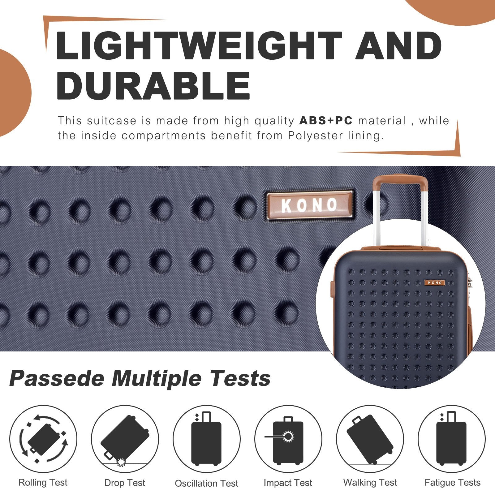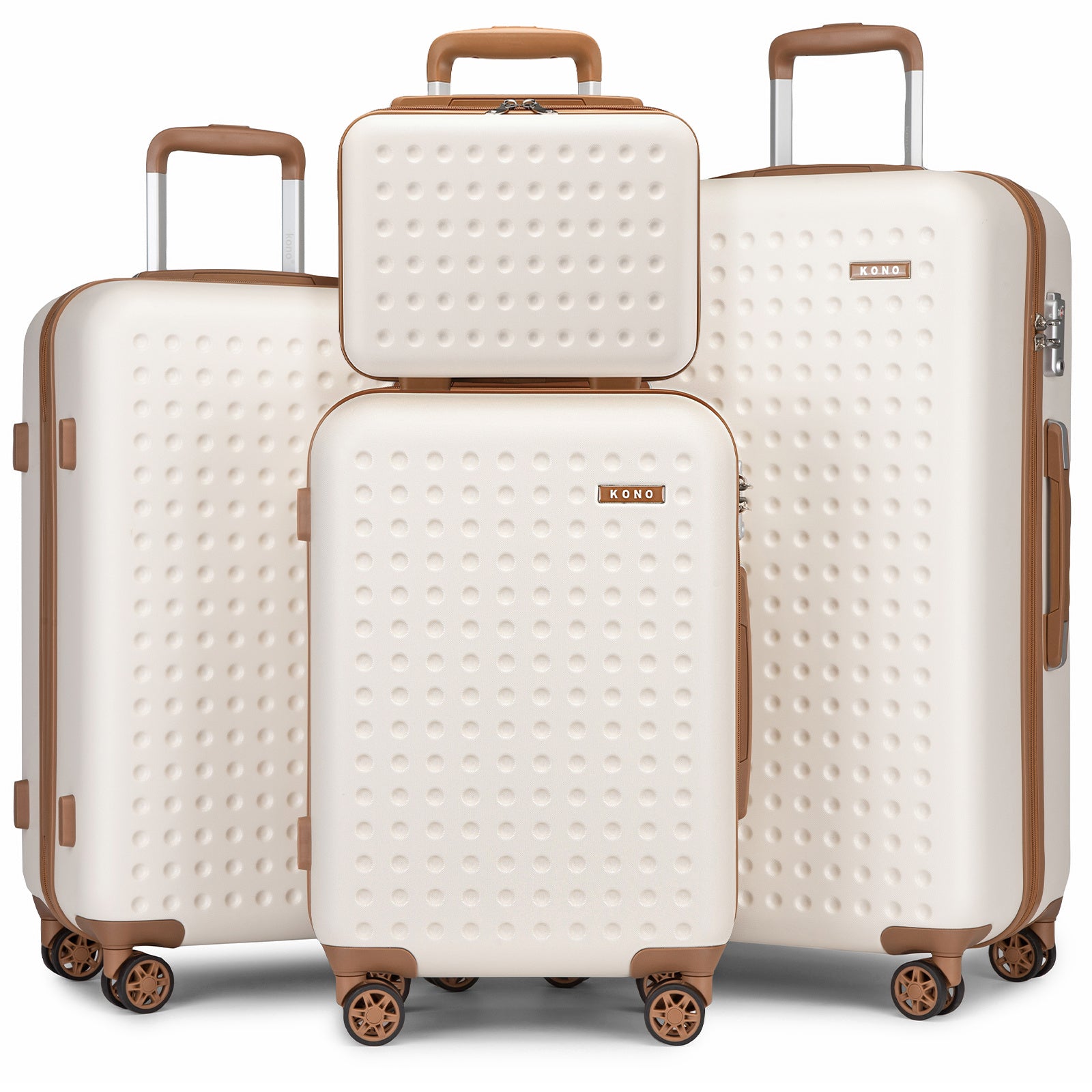 Set di 4 Valigie da 14/20/24/28 pollici Kono Elegante in ABS+PC a Pois con Guscio Rigido e Serratura TSA, Set di 4 Pezzi con Valigetta da Toilette, Bagagli da Viaggio Durevoli con Serratura TSA e Ruote Silenziose
