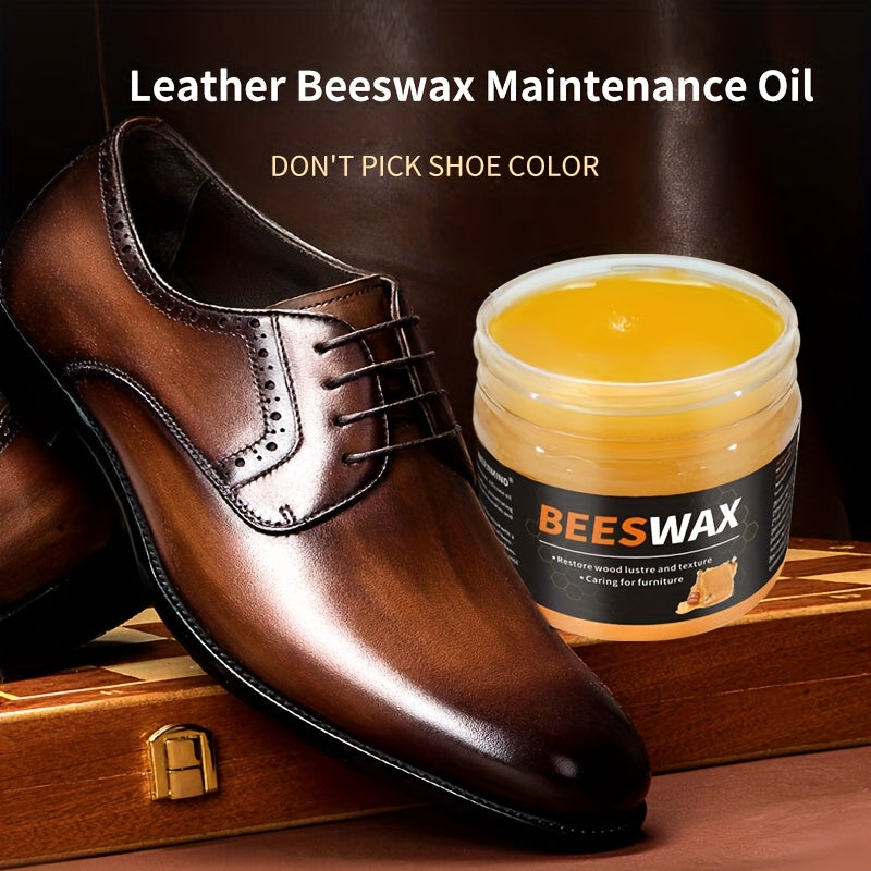 Set di cura per lucidatura scarpe con 1 spugna per lucidare, olio di cera d'api per finte pelle, colore universale per scarpe, borse, giacche, divani e altri prodotti in finta pelle Lucidatura rapida e nutrimento profondo