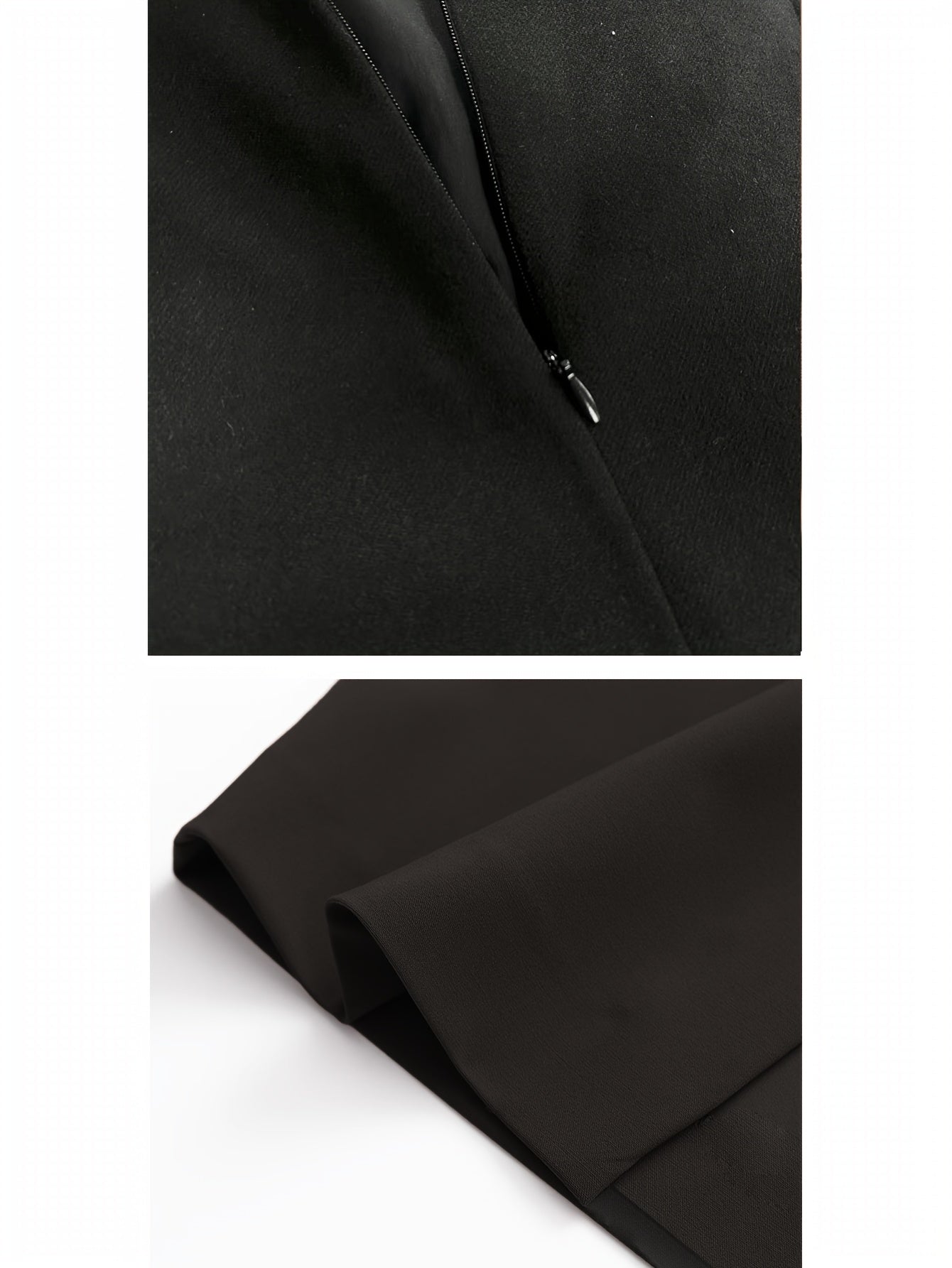 Set di maglione a righe e gonna nera per donna - Abbigliamento accogliente per autunno/inverno, dettaglio con cerniera, look casual chic, abbigliamento casual chic|Modello a righe|Chiusura con cerniera, set di maglione