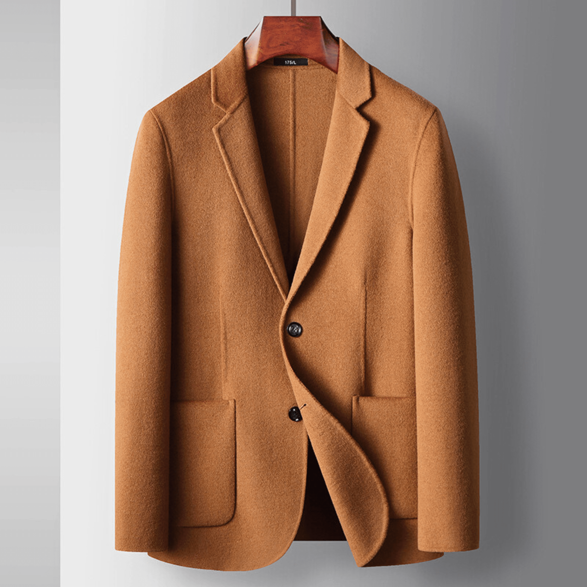 Crafted from premium wool with a double-sided finish, delivering natural warmth, breathability, and refined comfort. Designed with a tailored silhouette and minimalist detailing, it transitions seamlessly from business settings to casual occasions.