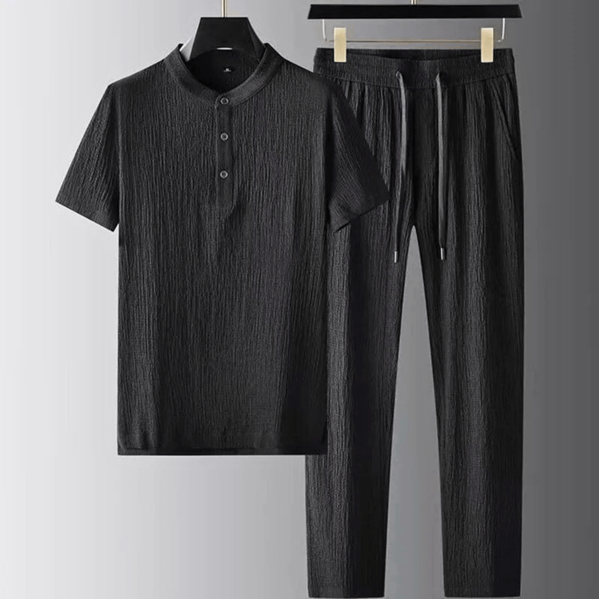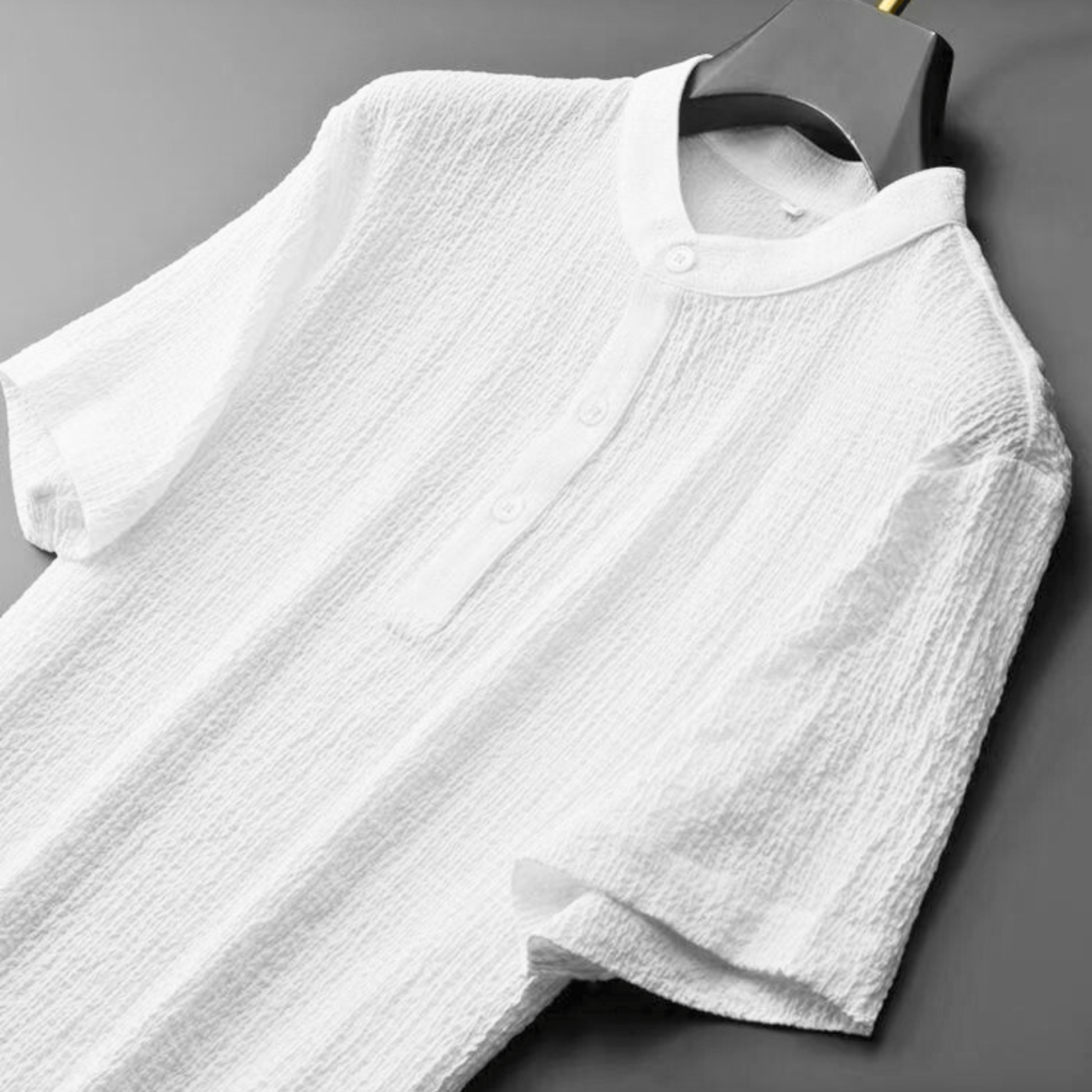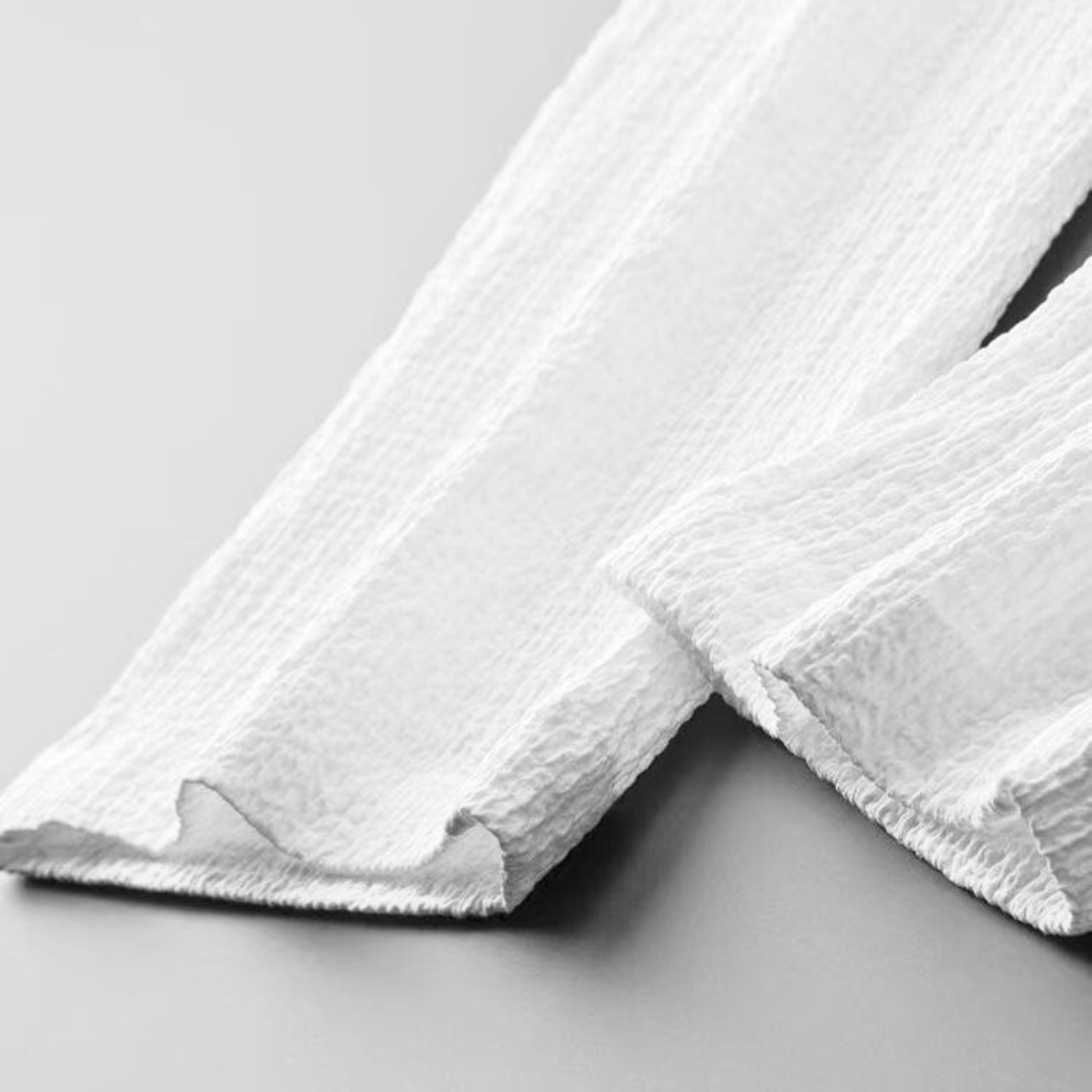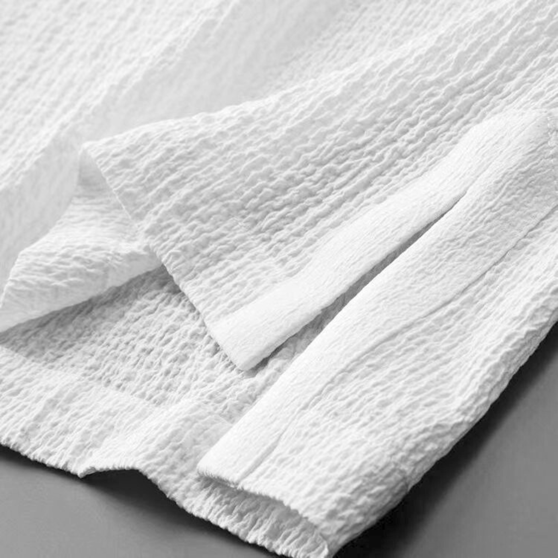 Crafted from breathable, textured fabric that blends minimalist luxury with all-day comfort. Featuring a relaxed tailored fit, wrinkle-resistant finish, and coordinated shirt-and-trouser design, it's your go-to ensemble for refined summer living.