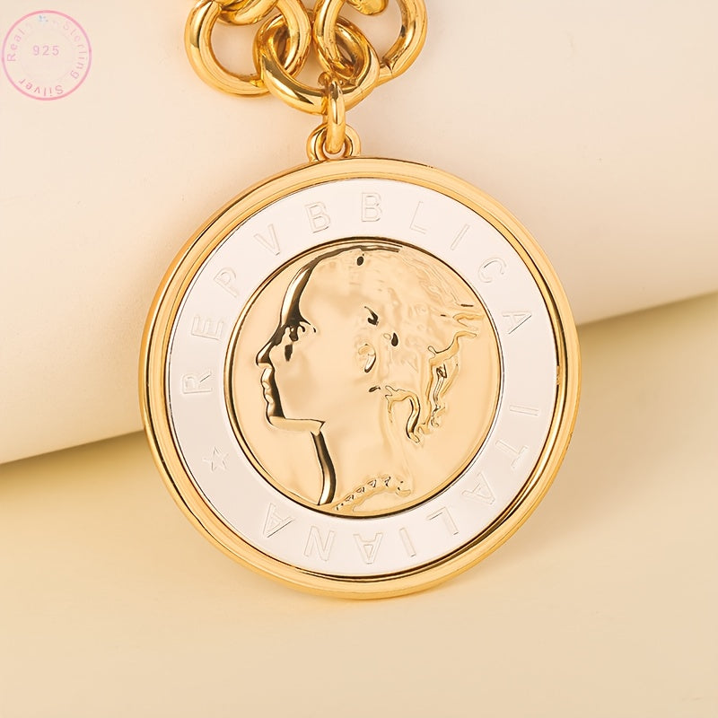 Un bracciale in argento sterling per donna, con bracciale a catena con moneta lira in alfabeto goffrato, bracciale a catena, bracciale con ciondolo, un regalo per la nipote, regalo di San Valentino, regalo di compleanno, abbinamento gioielli matrimonio, c