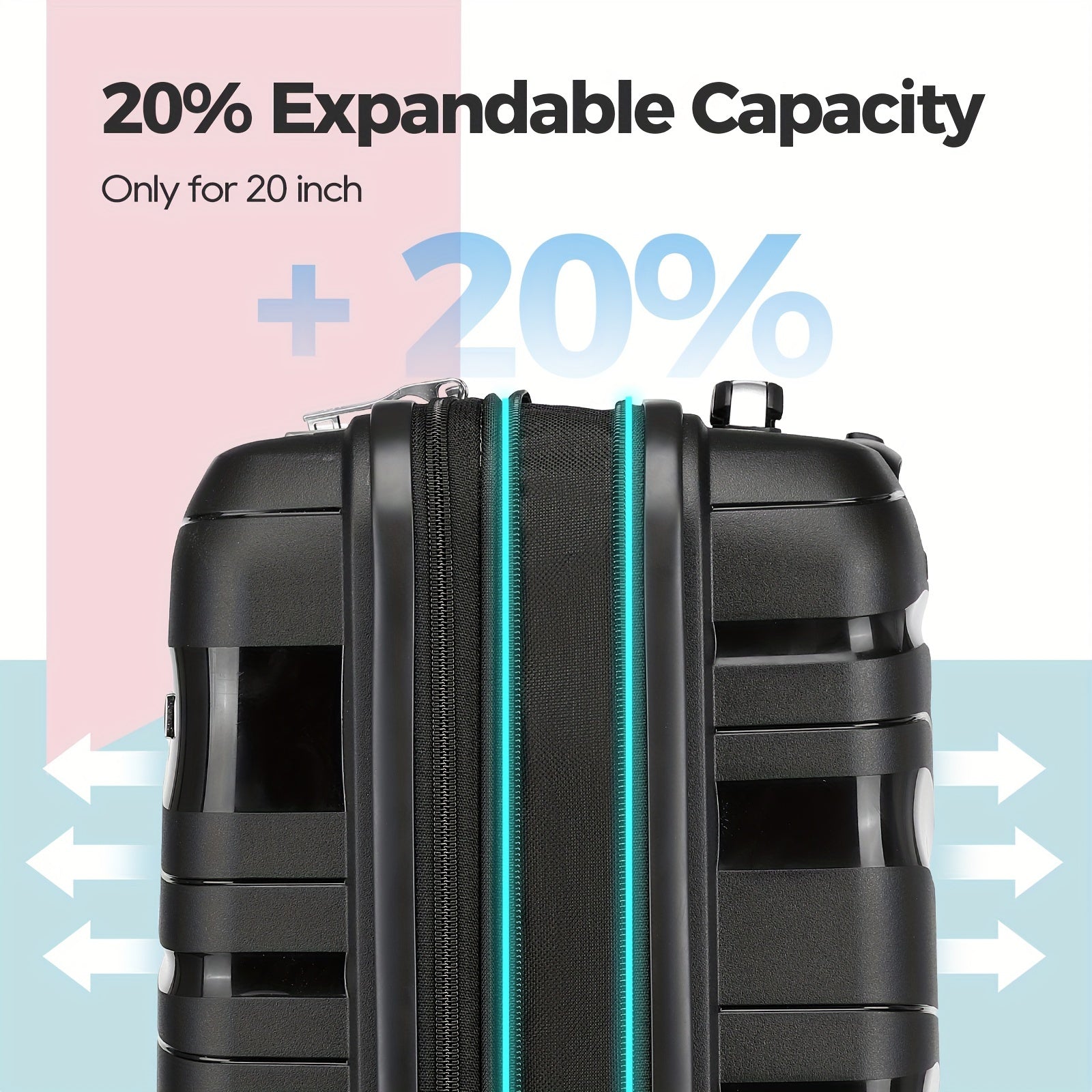 Valigia a mano Melalenia, Valigia leggera a mano, Valigia rigida espandibile in PP con ruote girevoli, Valigia da viaggio da 20" con serratura TSA (set da 3 pezzi)