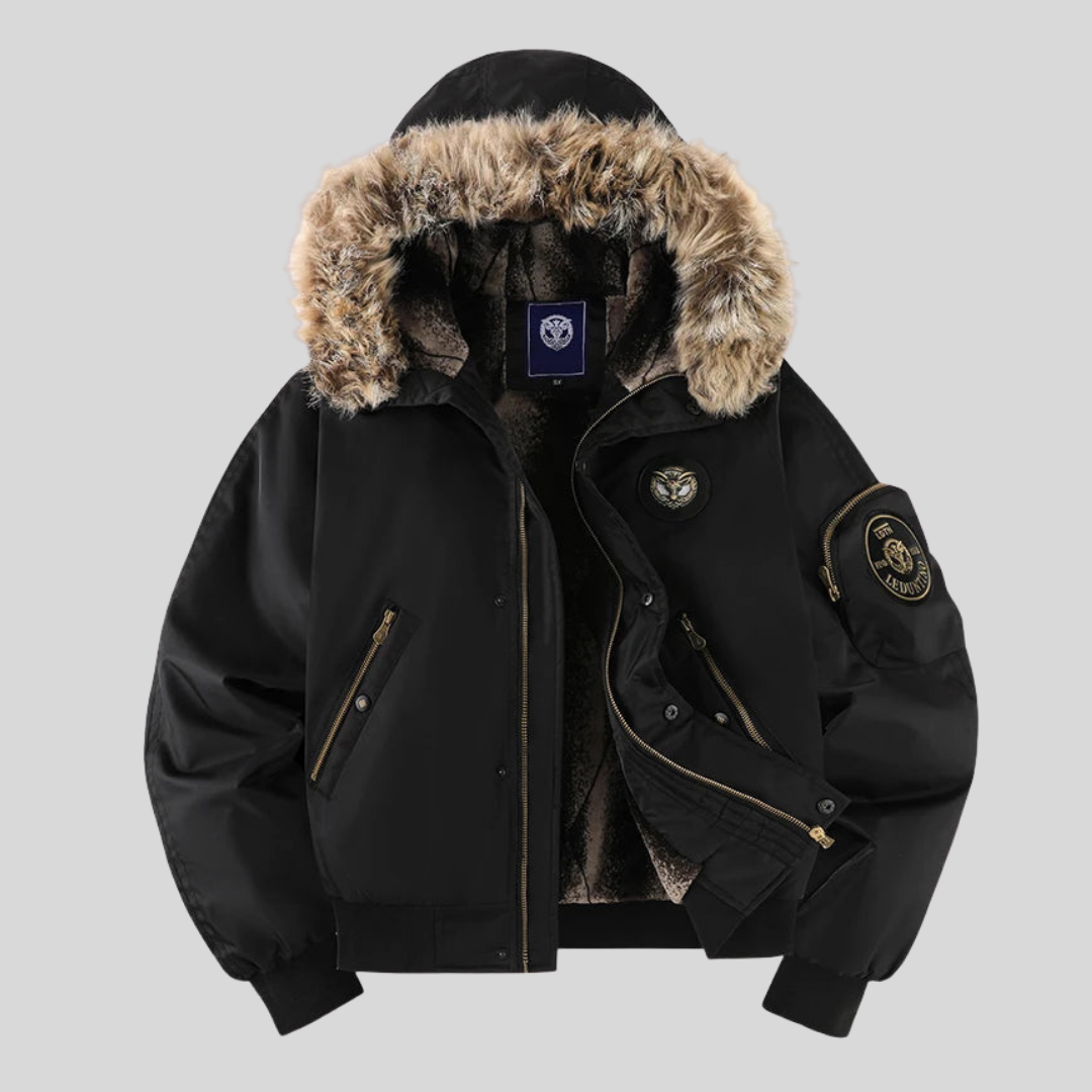 Progettata per l’uomo attivo che cerca una giacca capace di resistere agli elementi, combina un design funzionale con finiture di qualità premium: chiusura con zip rinforzata, tasche con cerniera pratiche e cappuccio foderato in morbida pelliccia sintetica.