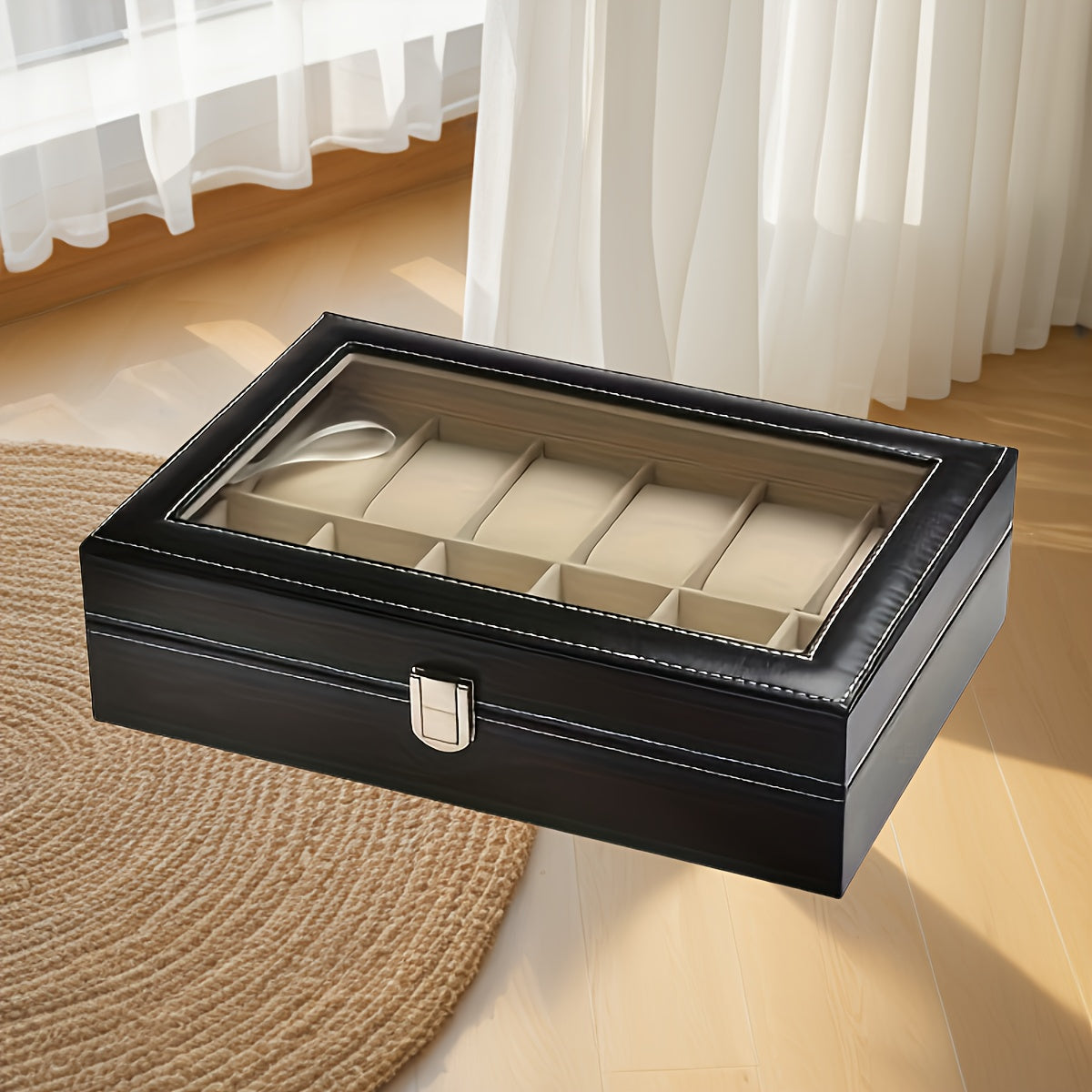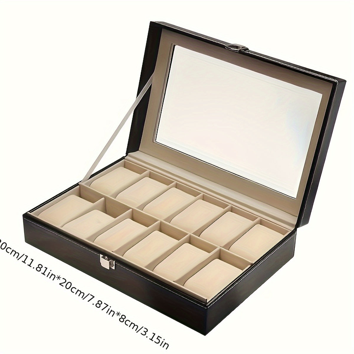 Vetrina per orologi in pelle sintetica con 12 slot e coperchi trasparenti - Scatola classica rettangolare per organizzare gioielli per orologi, braccialetti e accessori, contenitore resistente per la conservazione a tavolino per casa, boutique e regali, c