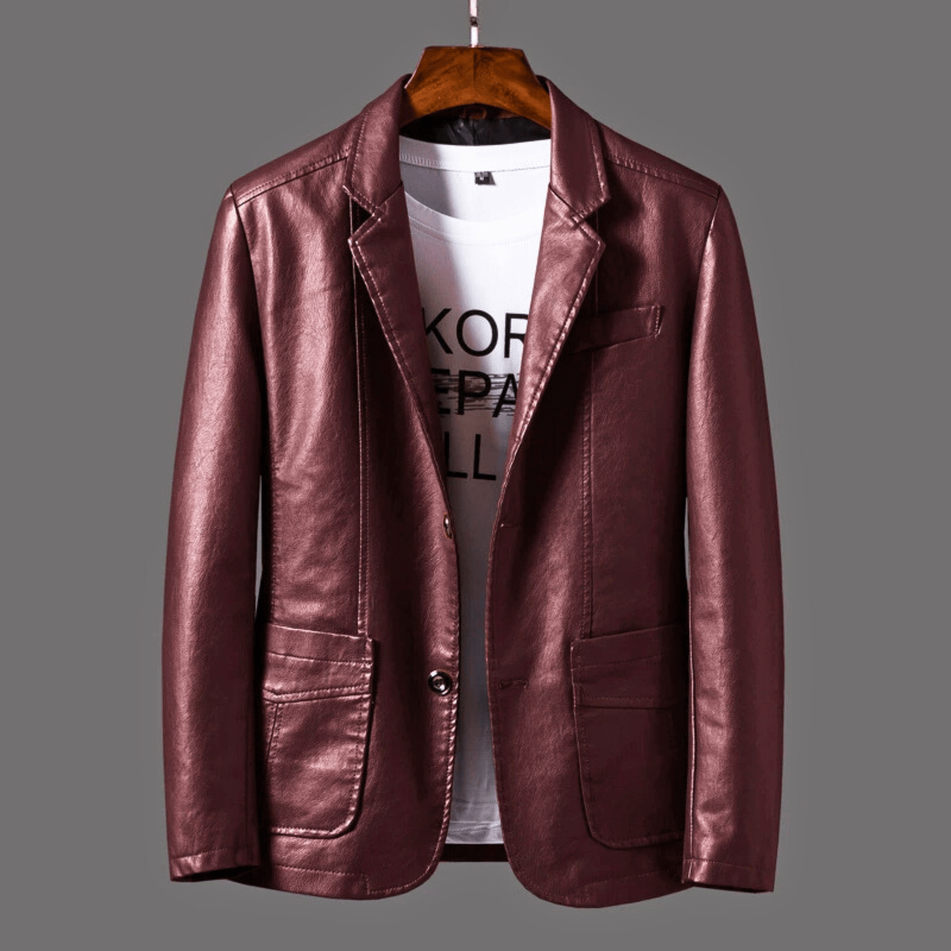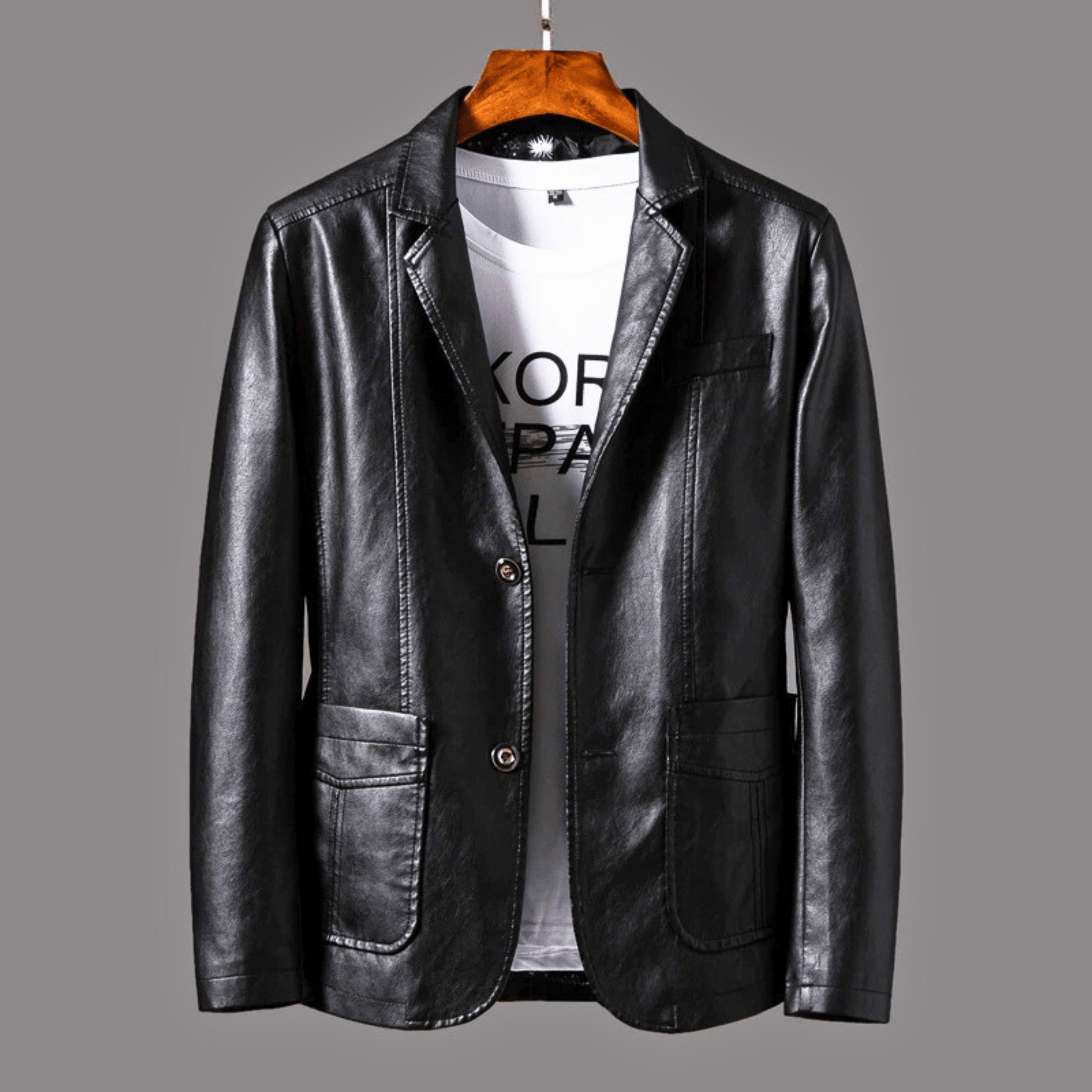Crafted from supple vegan leather, boasting a rich texture and a sleek, streamlined silhouette for a timeless look. With its tailored fit and rugged yet refined design, this versatile piece is your go-to outerwear for any season.