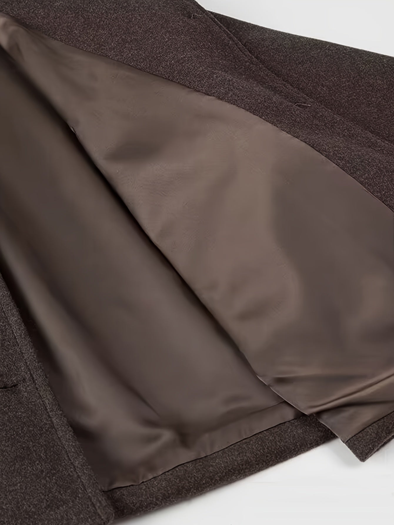 ZD0622917 Giacca Elegante Donna Marrone - Chiusura a Bottoni Classica, Cappotto Sartoriale in H-Shape Strutturato per Ufficio ed Eventi Casual e Formali - Design Stratificato Stagionale con Collo Vintage, Finitura Lucida, Tessuto di Alta Qualità, Abbiglia